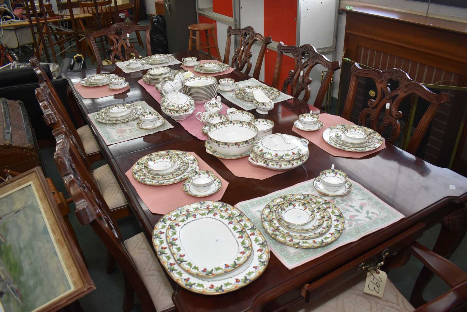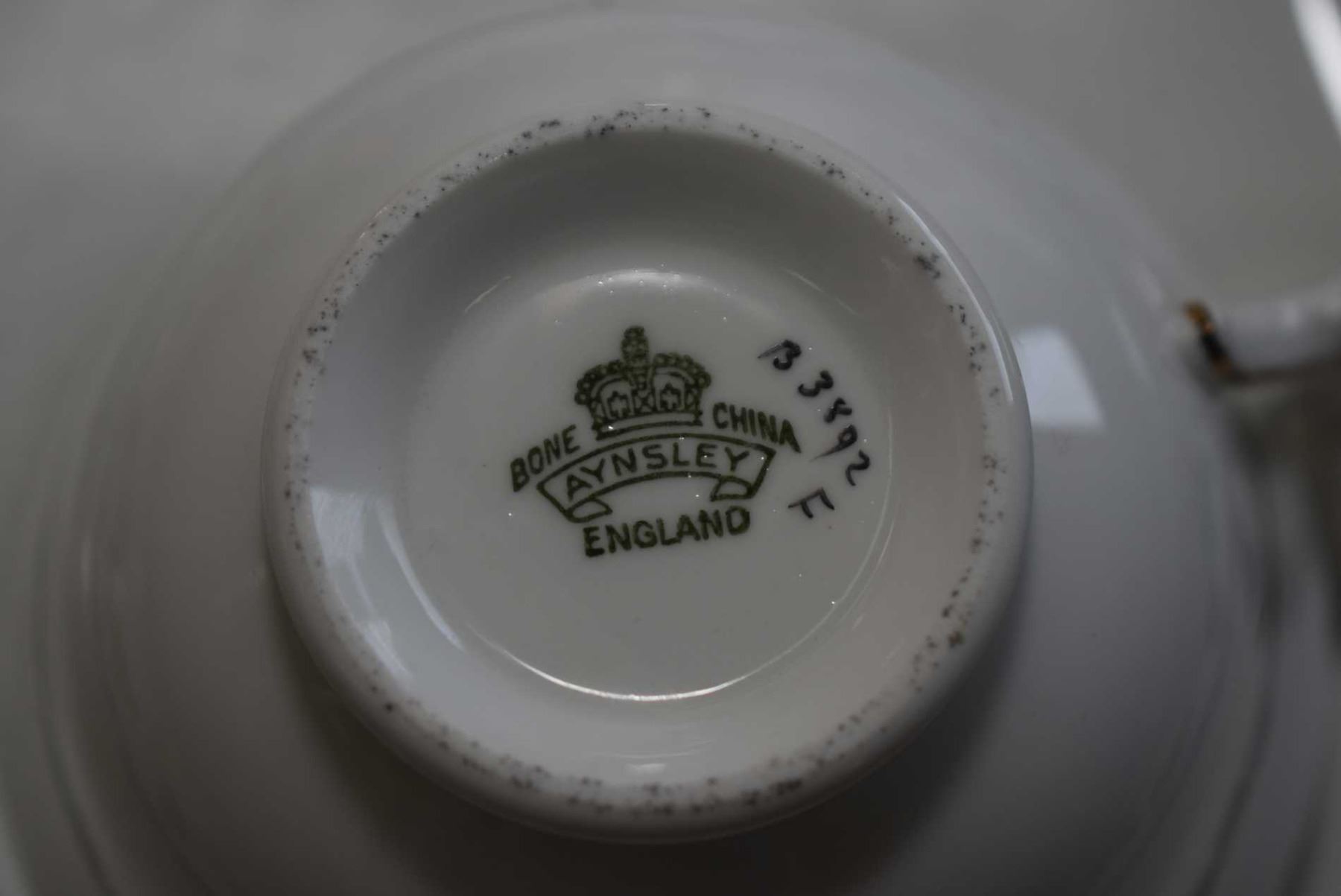 Large selection of Aynsley 3892 china dinnerware including settings for twelve of dinner plates, bread and butter, soup bowls and fruit nappies, plus eleven side plates, eighteen tea cups and saucers, two lidded serving dishes, open vegetable dishes, two platters and a sandwich plate, lidded sugar and open cream jug, sauce boat etc. Not available for shipping. Local pickup only