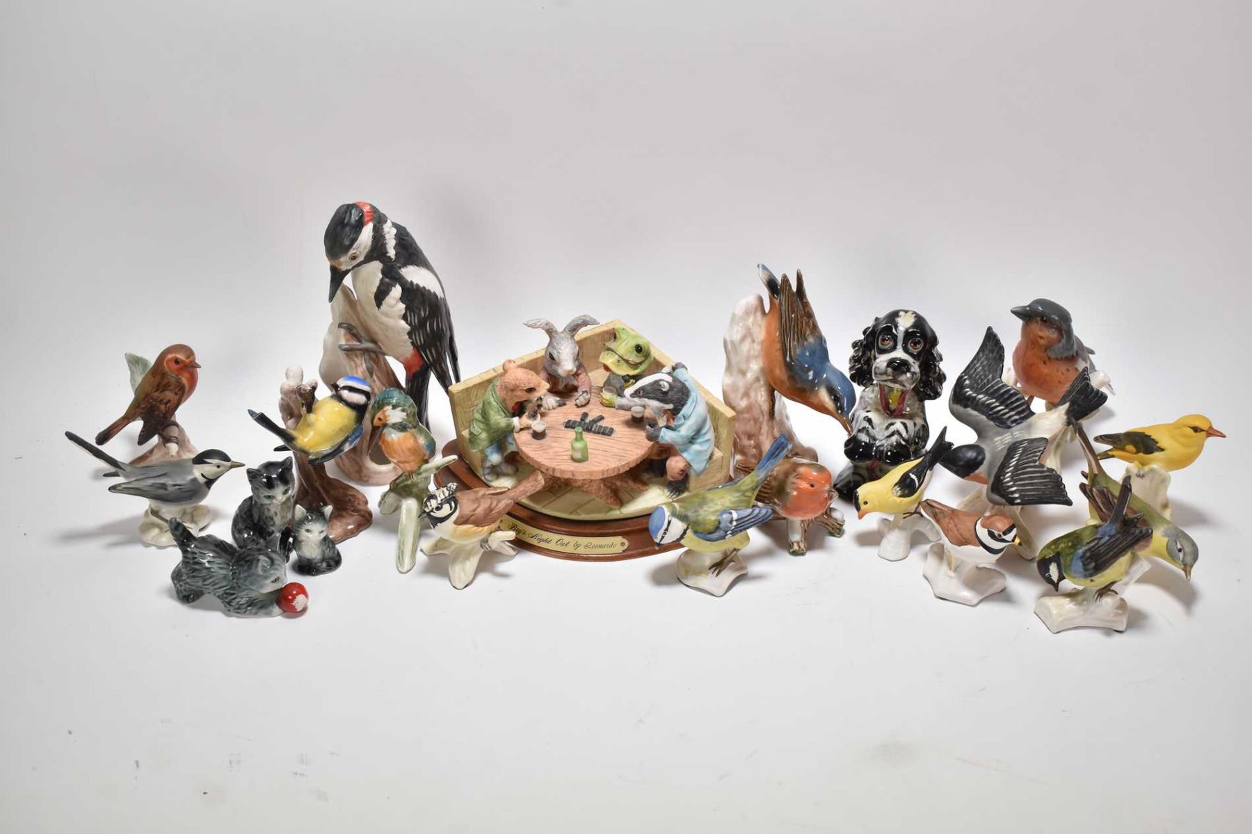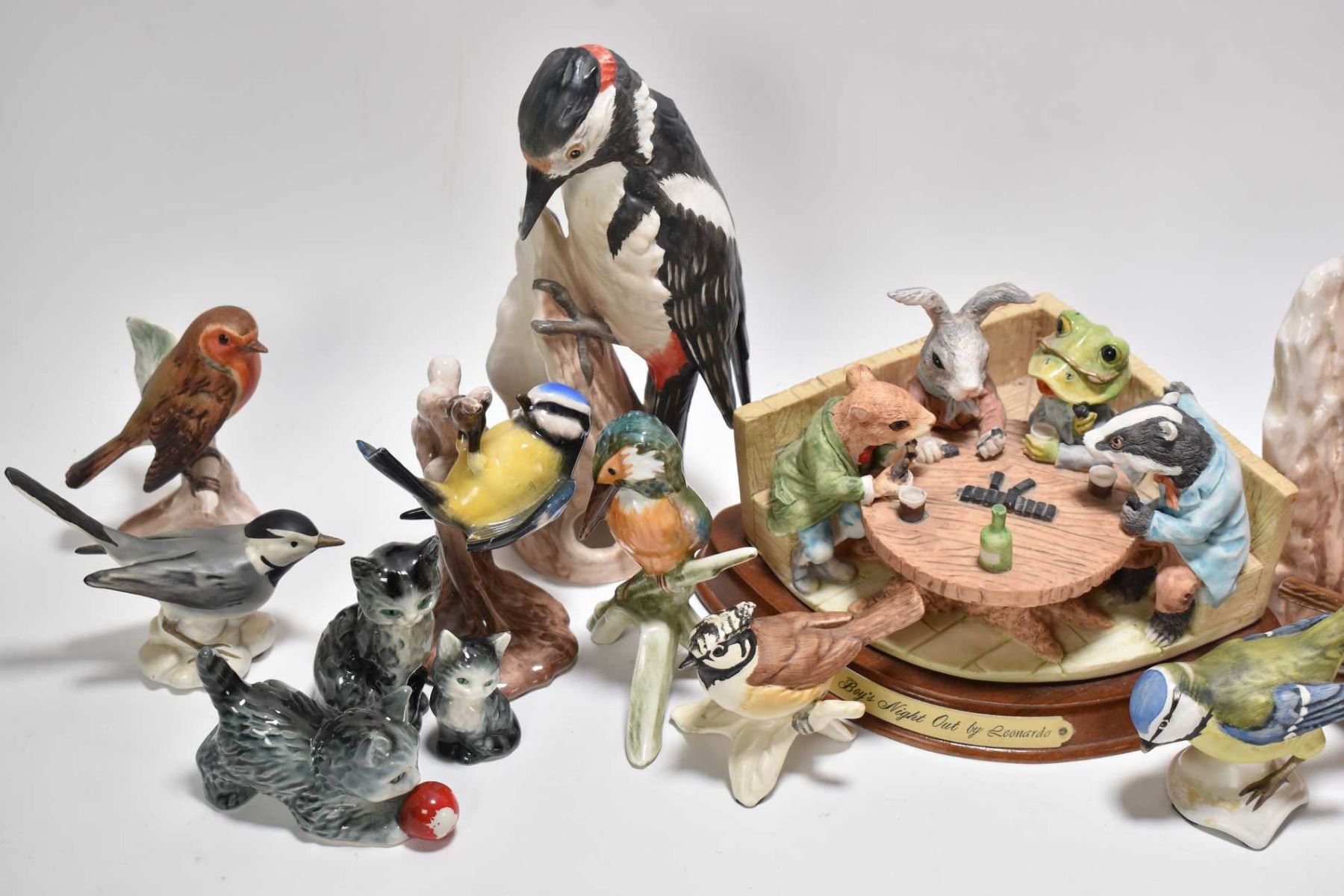 Large selection of Goebel animal figures, mostly birds and cats and dogs plus a "Boy's Night Out" by Leonardo