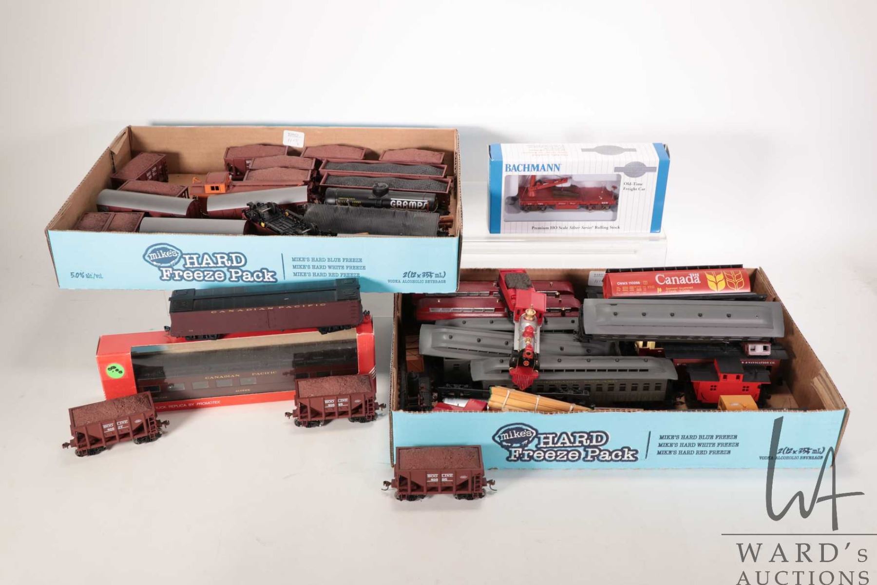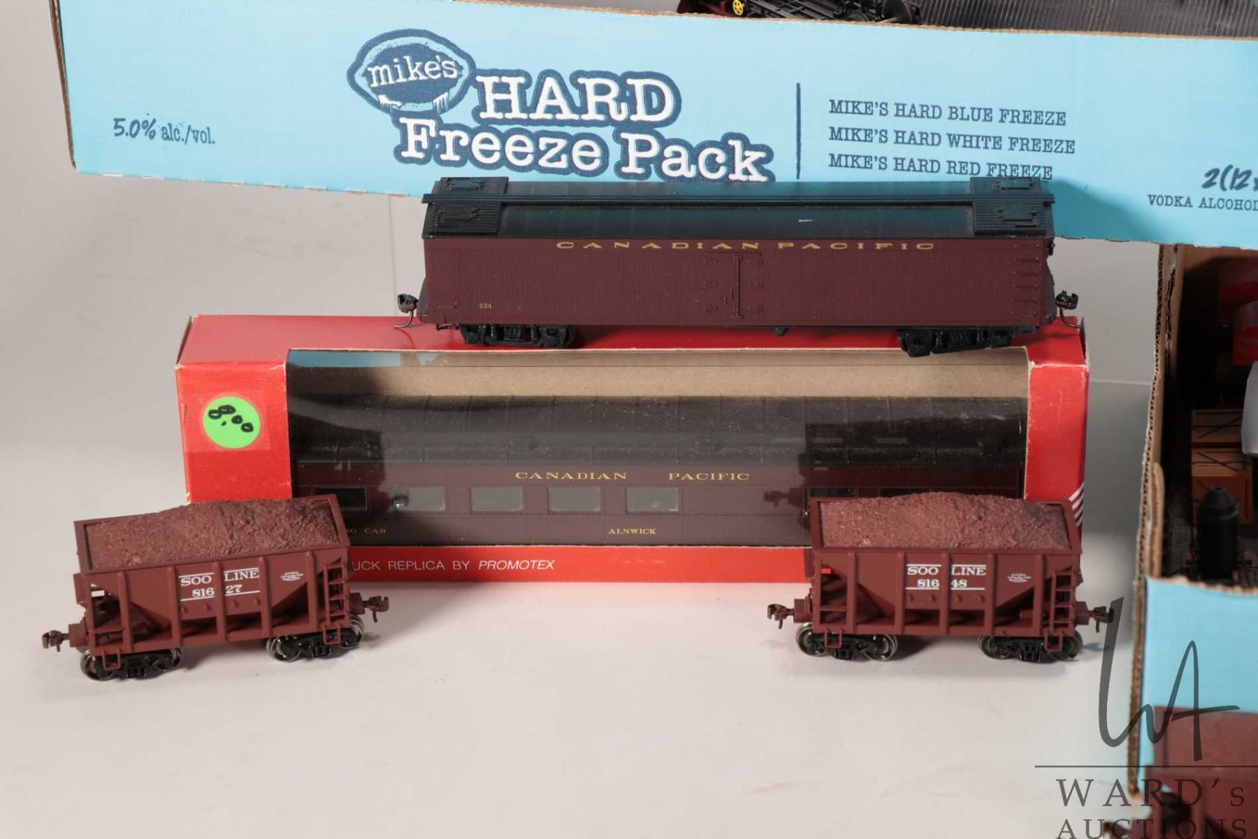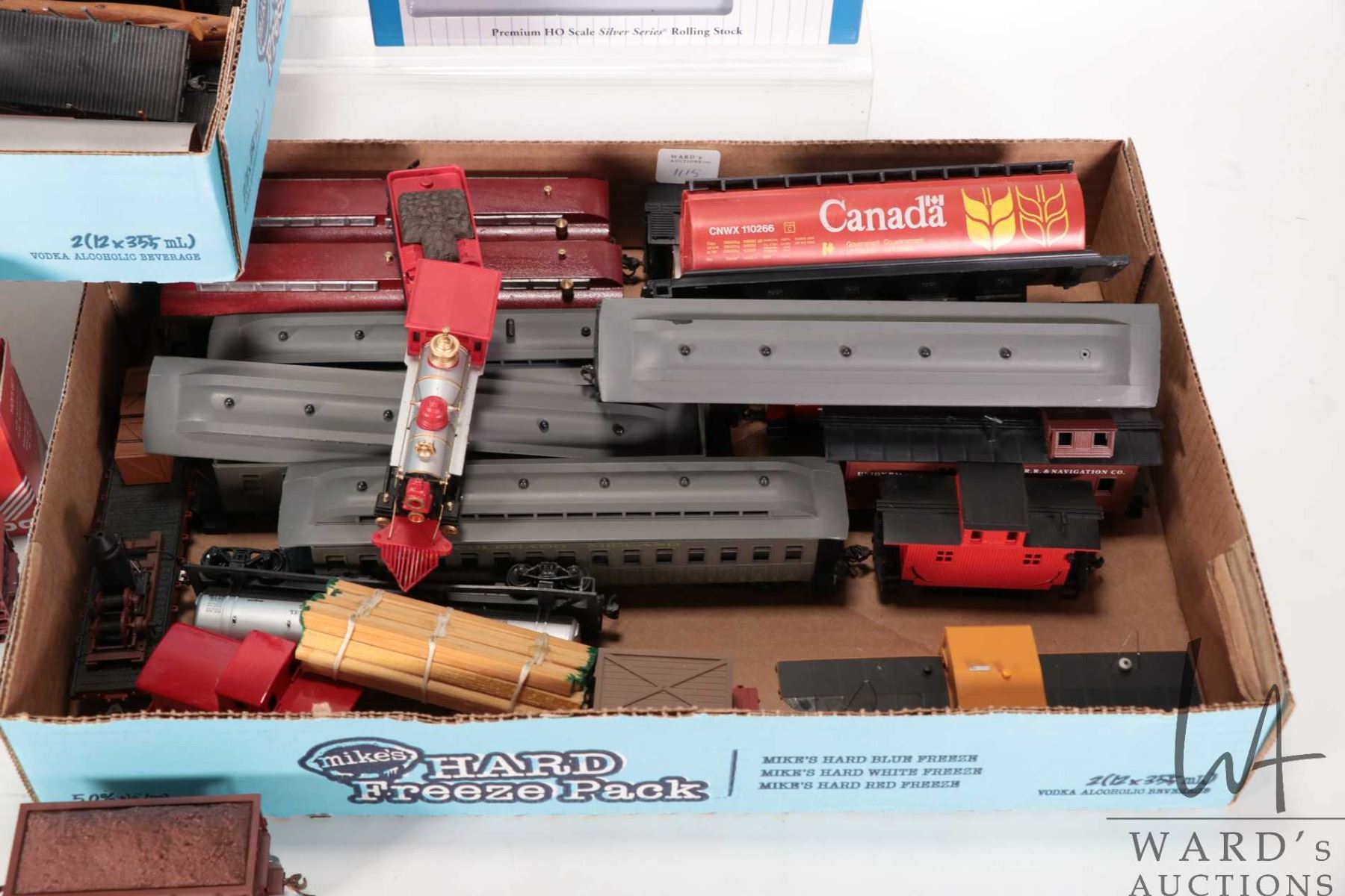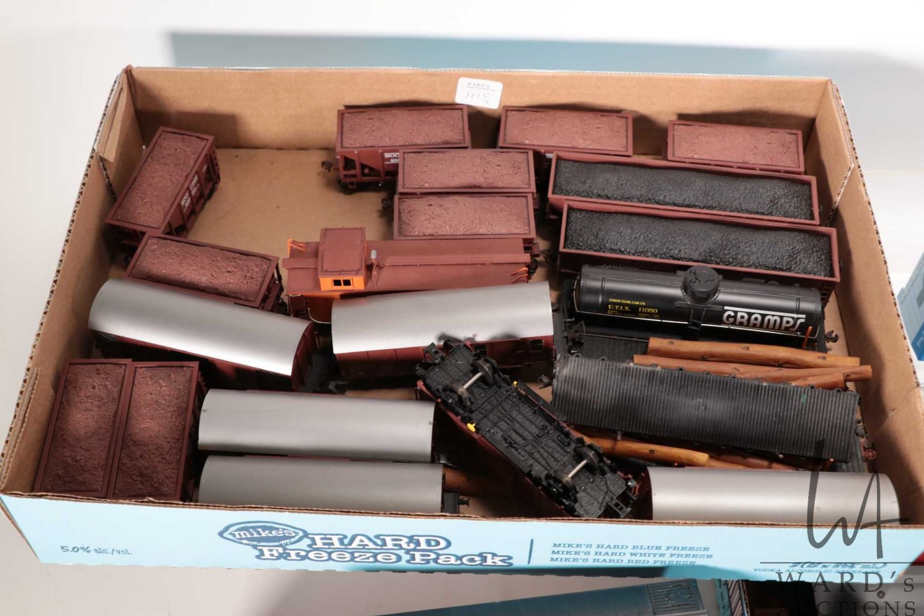Large selection of HO scale rolling stock plus an engine, note: motor runs but needs drive gear