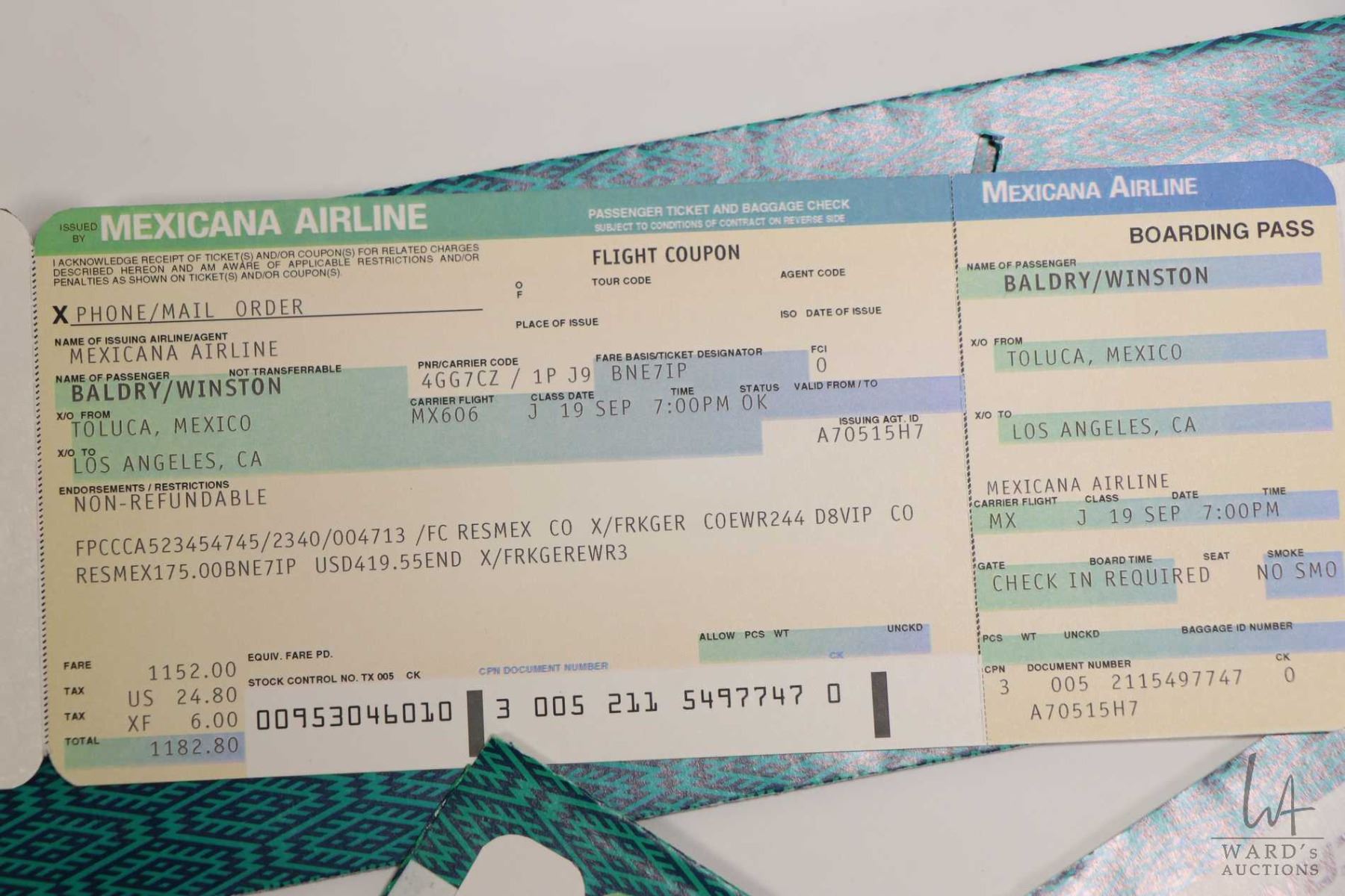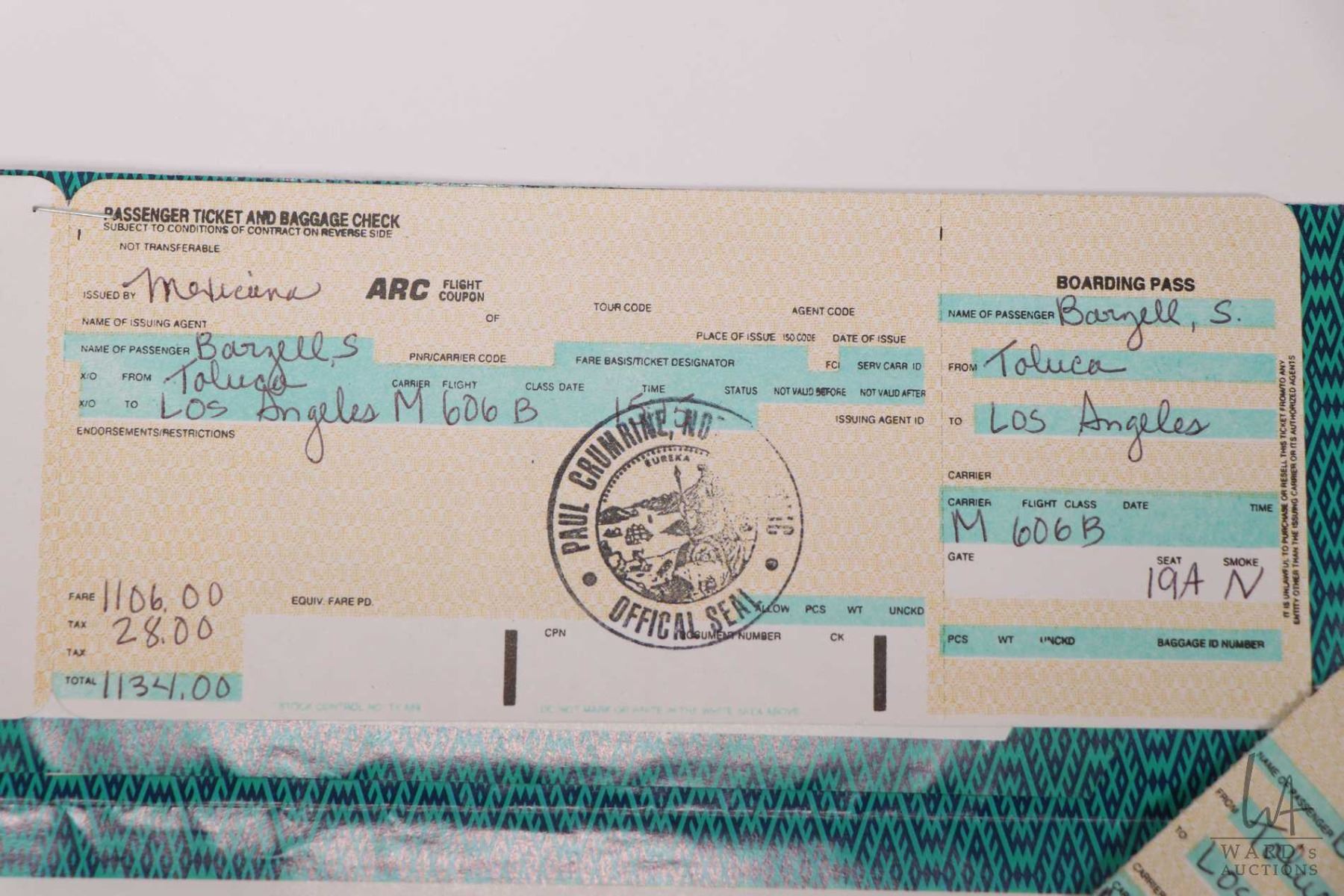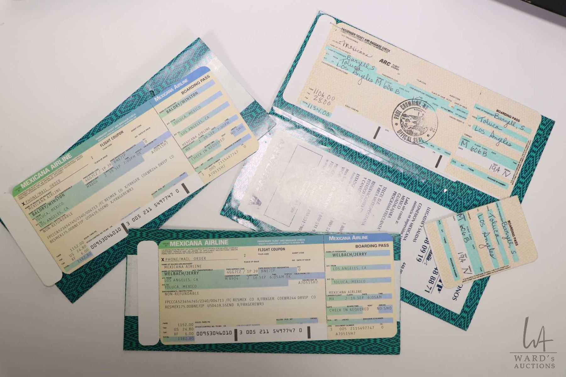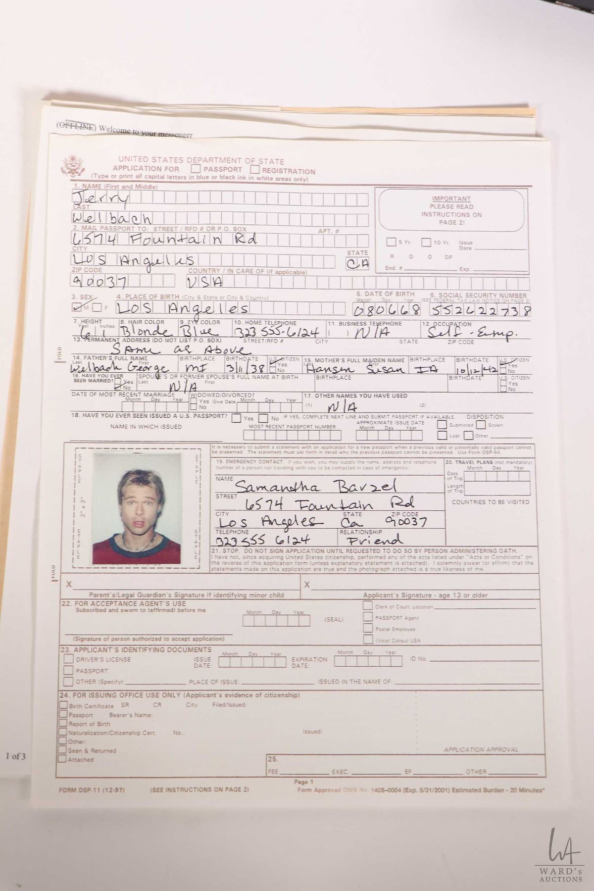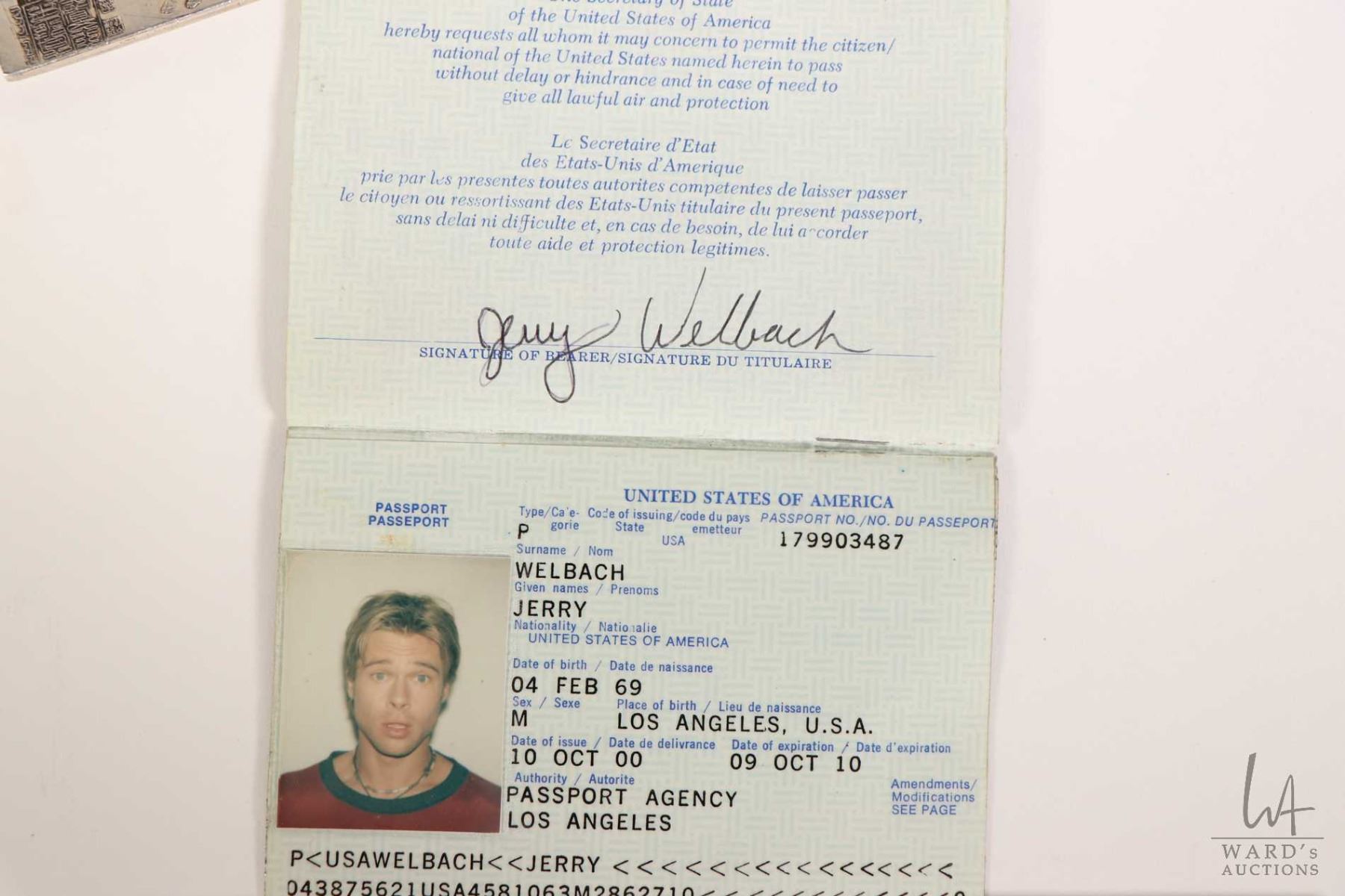Large selection of authentic movie props from 2001 Gore Verbinski's production of "The Mexican" including the sunglasses, passport, airline ticket and boarding pass for Brad Pitt's character 'Jerry Welbach' plus Winston Baldry's (James Gandolfini) boarding pass, original photos of Arnold Margolese (Gene Hackman) and Brad Pitt's passport photos and a notepad from Margolese Holding Inc. Includes letters of authenticity and correspondence between the consignor and Tommy Tomlinson ( Property Master for the movie) including negotiation of a price of $2500.00 USD for passport and sunglasses