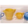 Large selection of child's glass dishware including creams and sugars, teacups and saucers, small jugs, side plates, beakers etc.