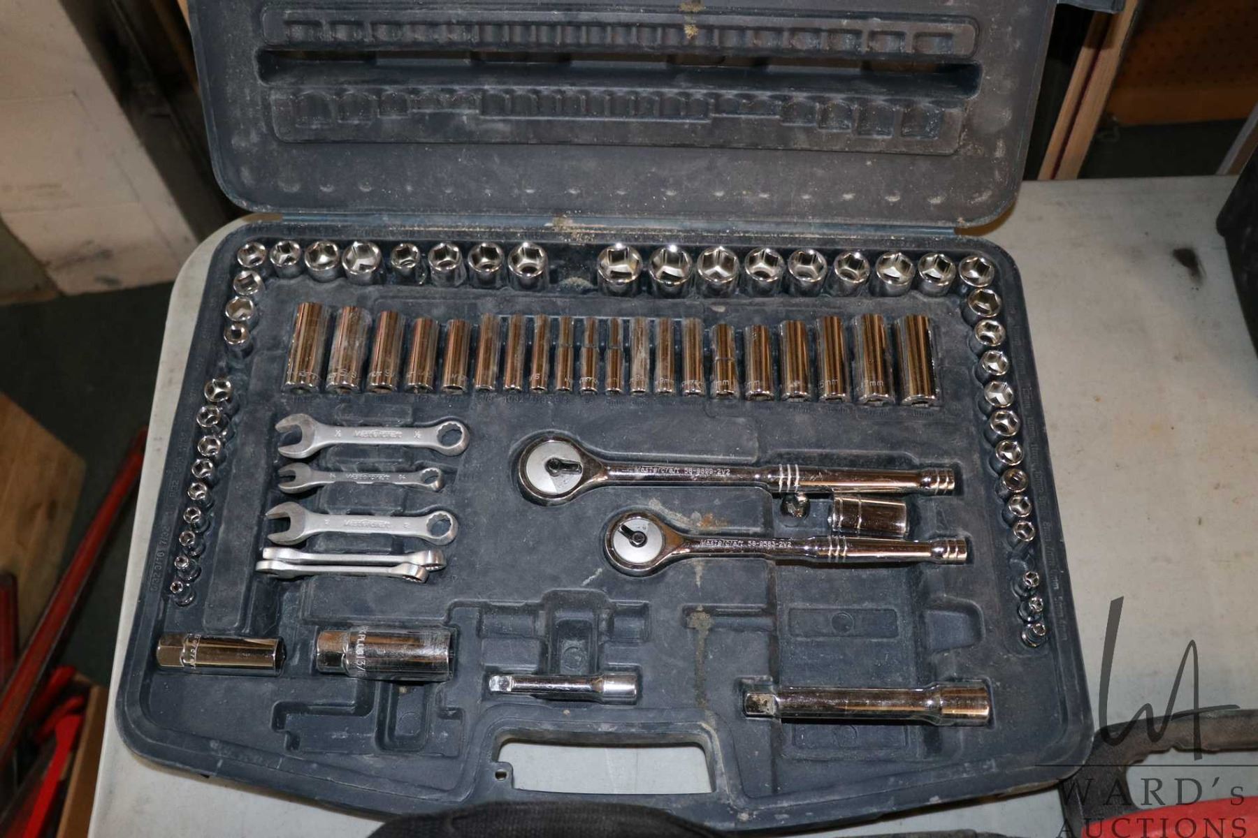 Large selection of hand tools including two socket sets, side cutters, pliers, Allen wrenches, screw