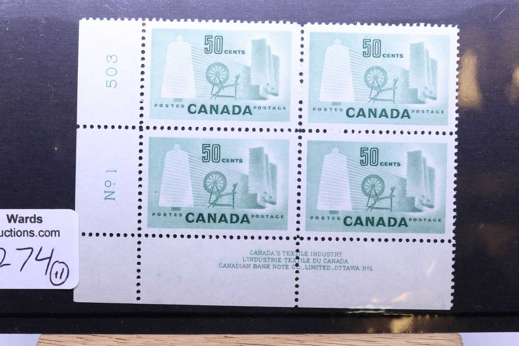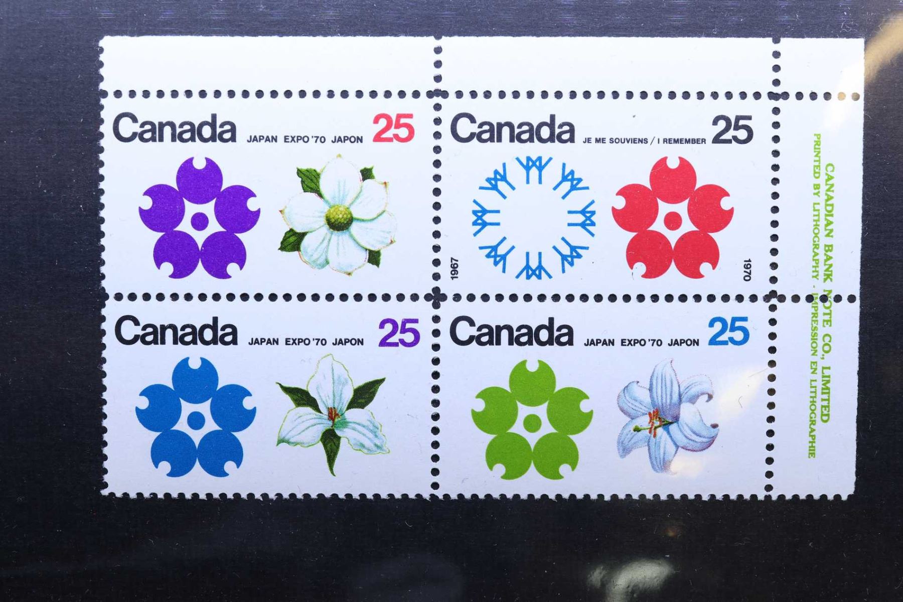 Large selection of non-circulated Canadian collectible postage stamps, all in joined set of four, all in very fine condition, all with two margin including 50 cent "Canada's Textile Industry", 5 cent 1955 "World Jamboree", 15 cent 1957 "UPU Congress, Ottawa", 15 cent "Centennial of British North American Postal Administration", 1 dollar 1967 "Edmonton Oil Field", 25 cent "Canada's Chemical Industry", 1 dollar "Canadiana The Totem Pole", 25 cent "Japan Expo '70", 2 dollar "Ashton-Potter Ltd", 1 dollar 1963 "Crane and Map" plus a set of ten 5 cent "All Season's Playground"