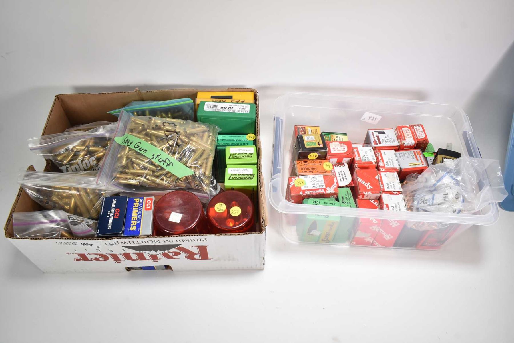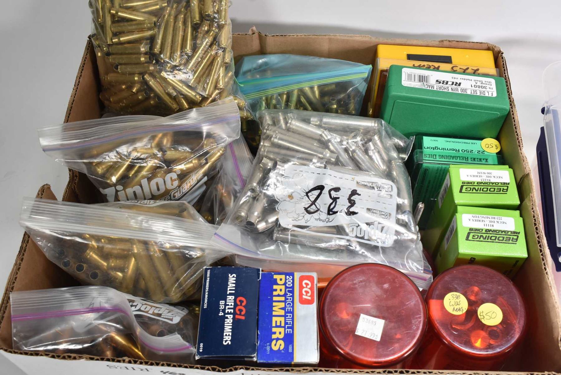 Large selection of rifle brass, lead, primers and reloading dies for .22 cal, .308, 7mm and 338
