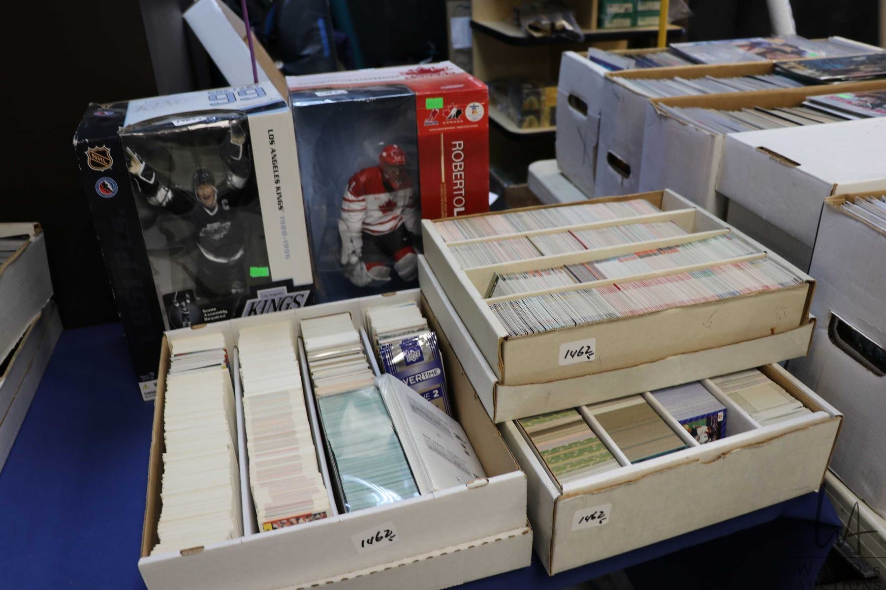 Large selection of sports trading cards plus large Wayne Gretzky and Roberto Luongo figures. Importa