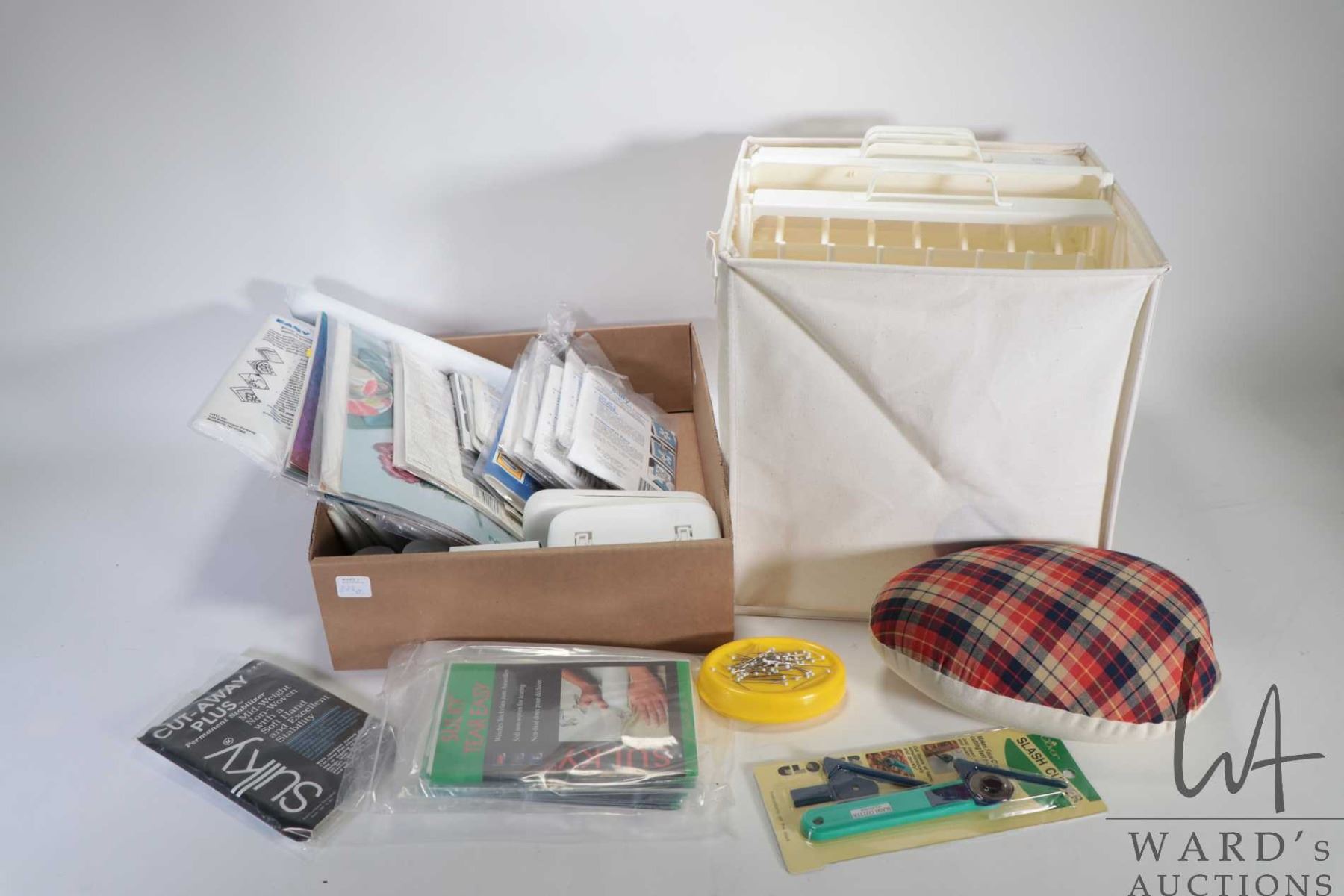 Large selection of stabilizer, side winder electronic bobbin winder, cased set of Pro Seam Rippers, sewing ham, magnetic pin holder, fabric cutting weights etc.