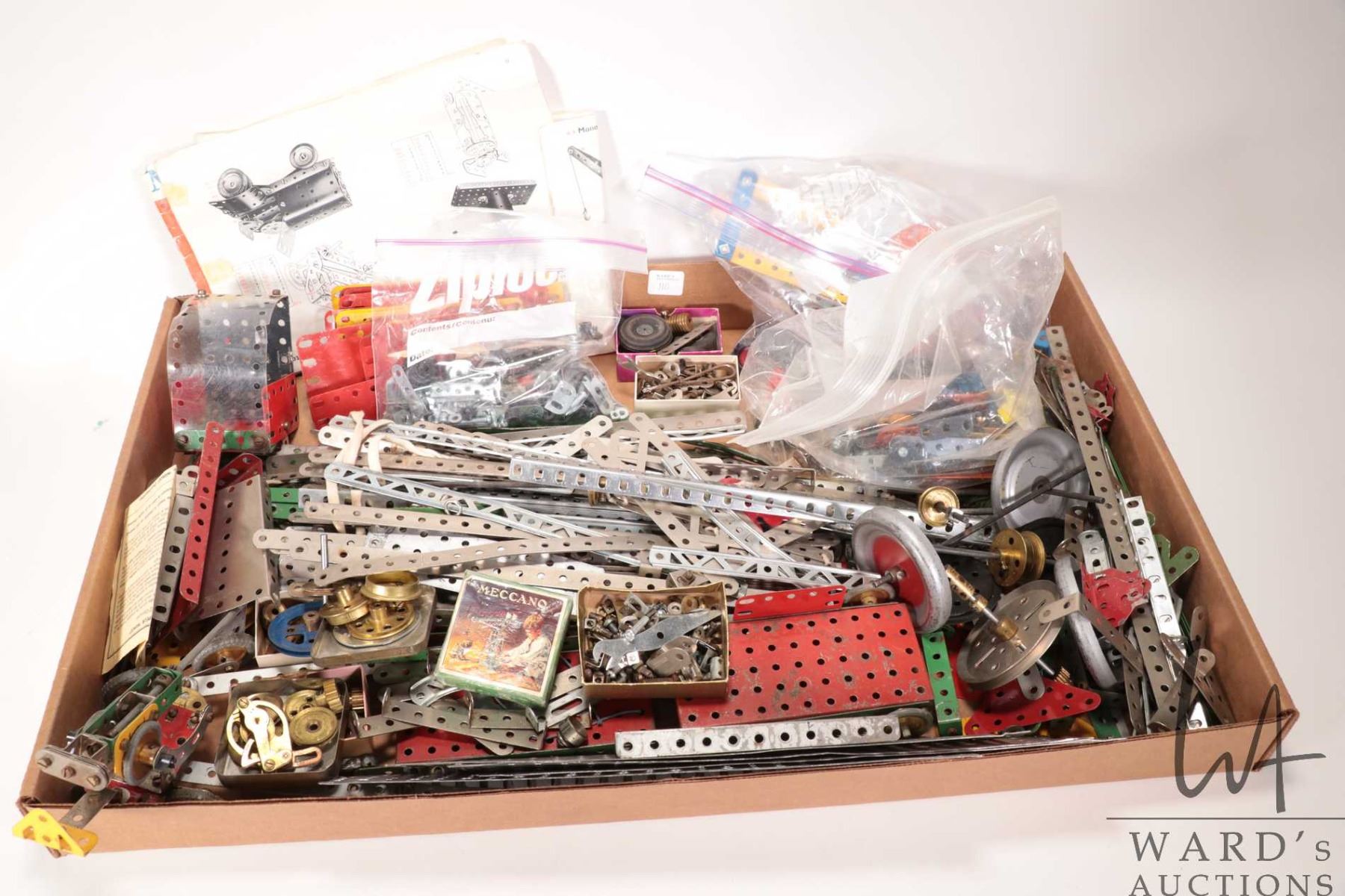 Large selection of vintage Meccano metal building pieces and fasteners etc.