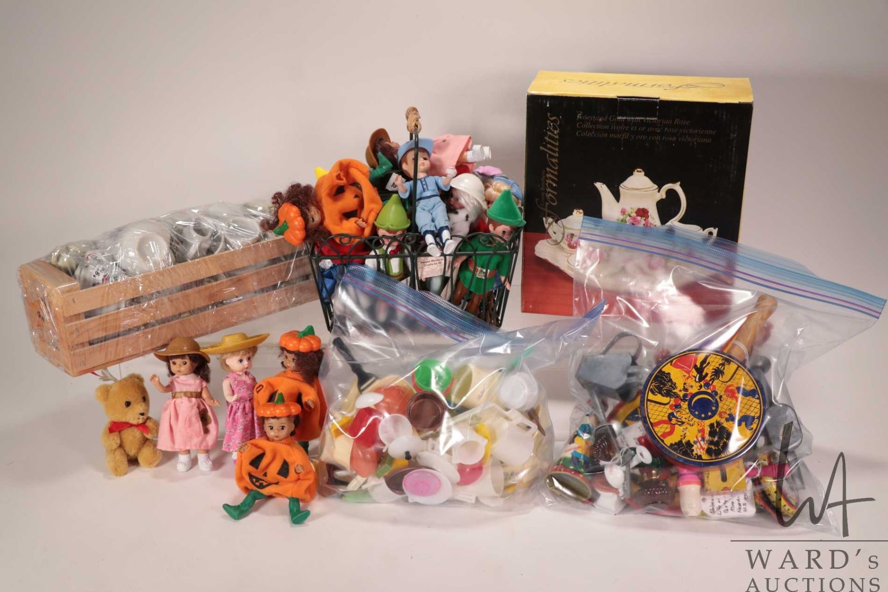 Large selection of vintage and collectible toys including Barbies and Barbie furniture and a selection of doll's tea sets and MacDonald Madame Alexander toys etc.