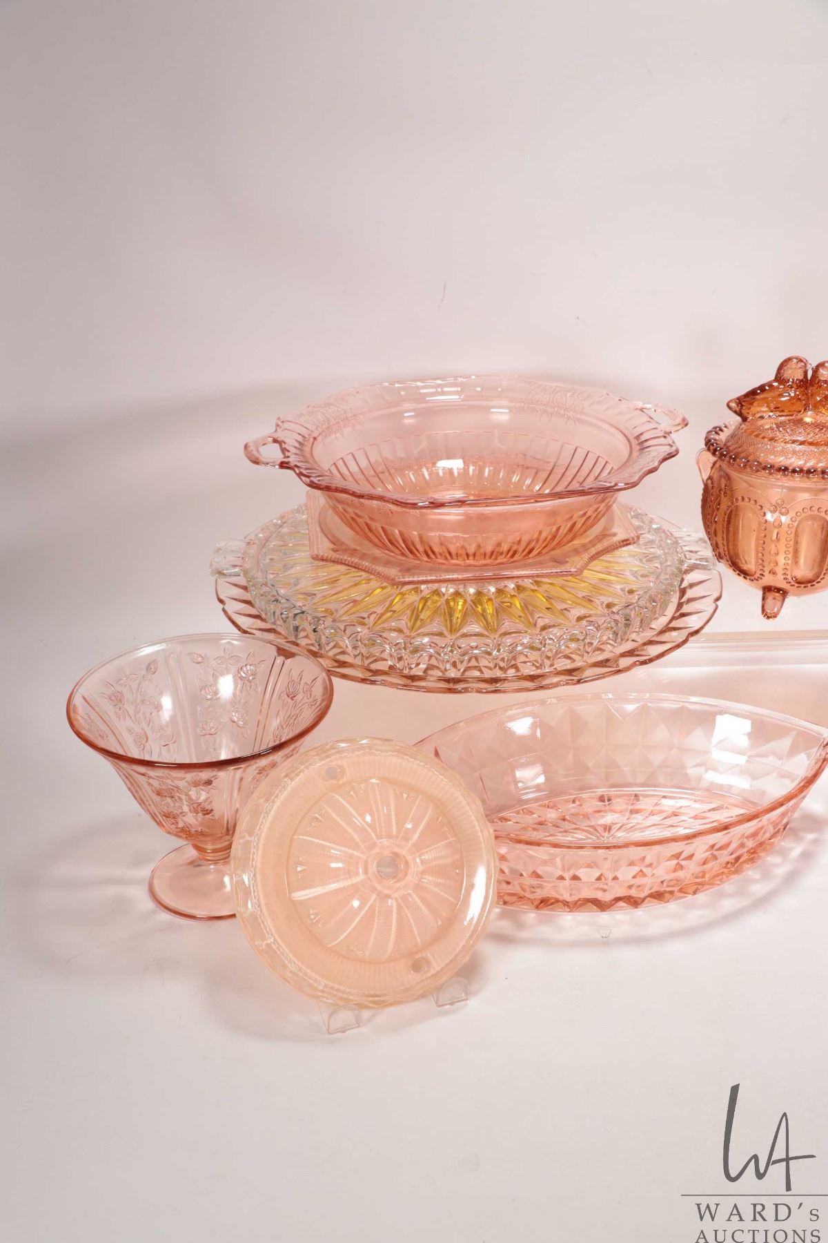 Large selection of vintage glass includings roosters, pot with lovebird finial lid, bowls, plates etc. Note: No shipping for this lot. Local pickup only