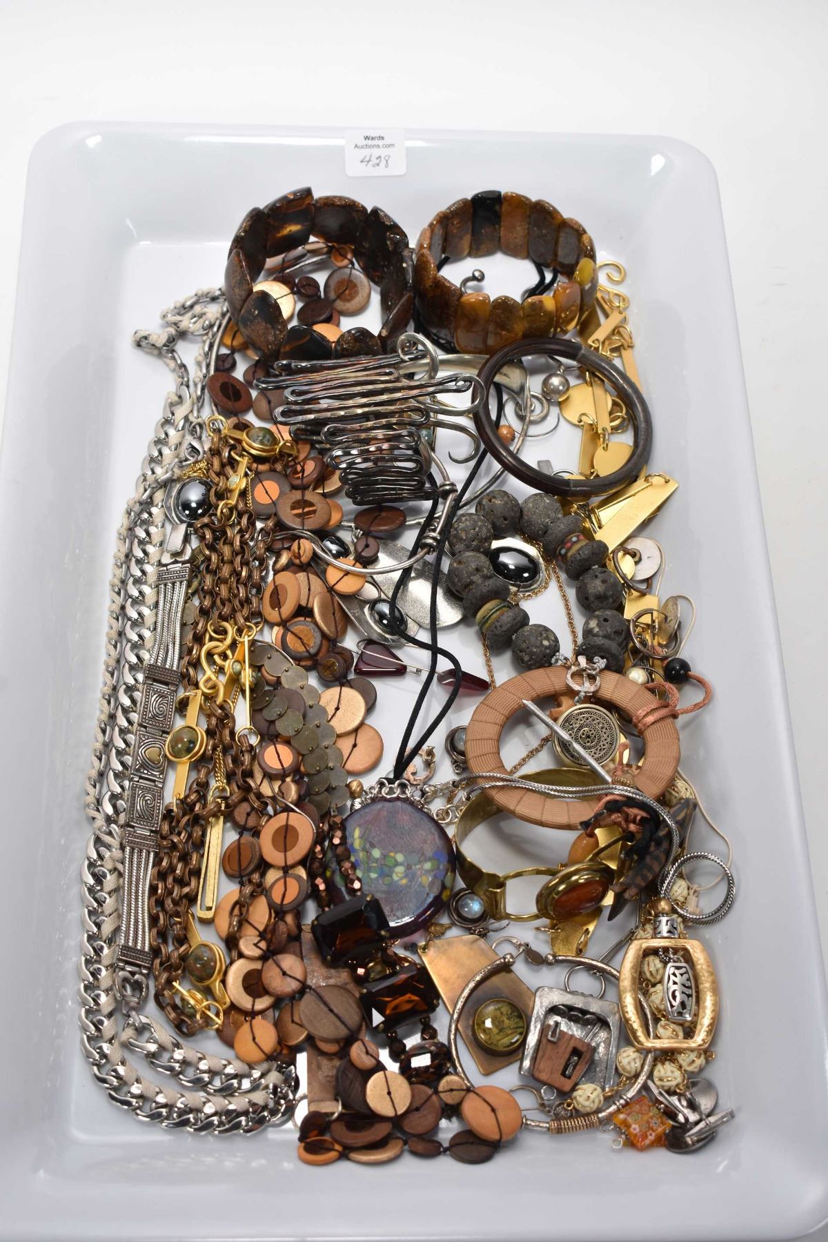 Large tray lot of collectible jewellery including designer pieces, stelring silver, earrings, necklaces, bangles etc.