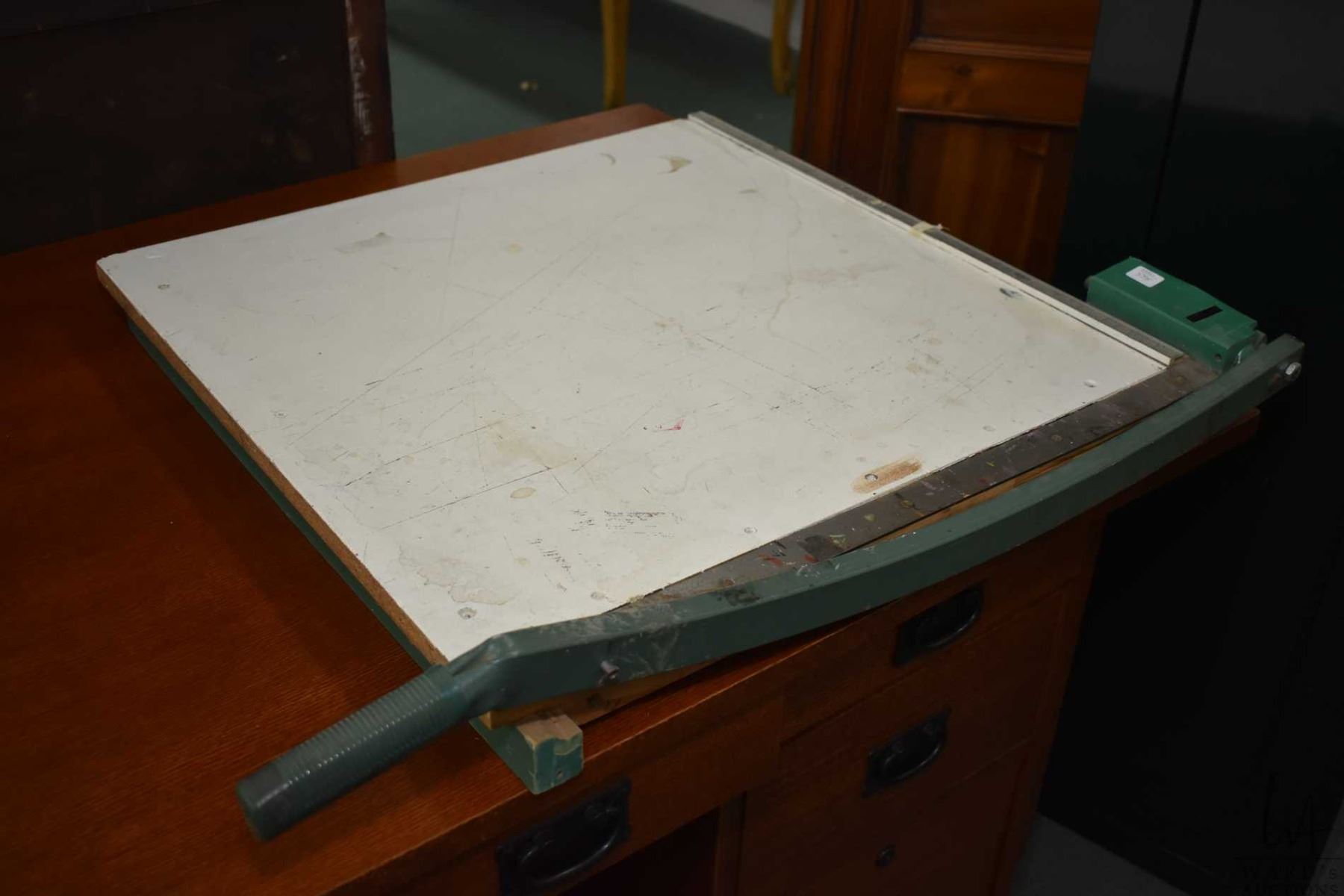 Large vintage paper cutter 24" X 24" surface made by Premier. Note: This lot cannot be shipped. Local pickup only