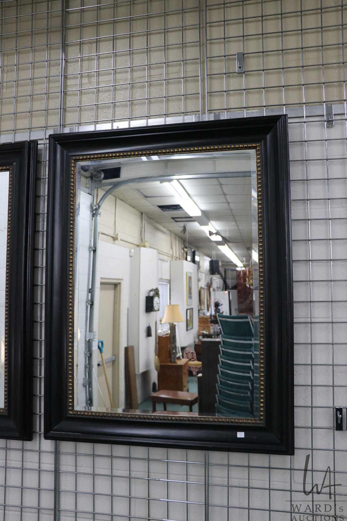 Large wood framed beveled glass mirror, overall dimensions 48" X 38"