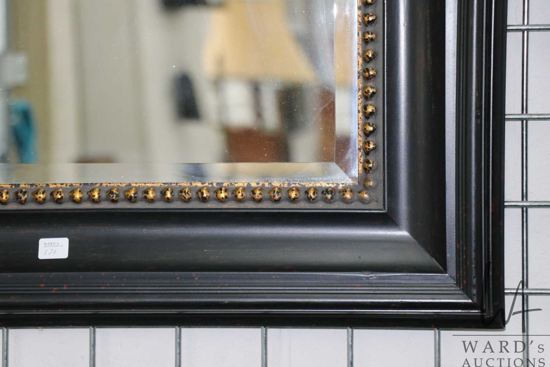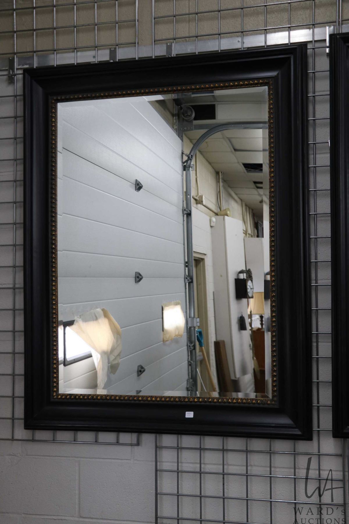 Large wood framed beveled glass mirror, overall dimensions 48" X 38"