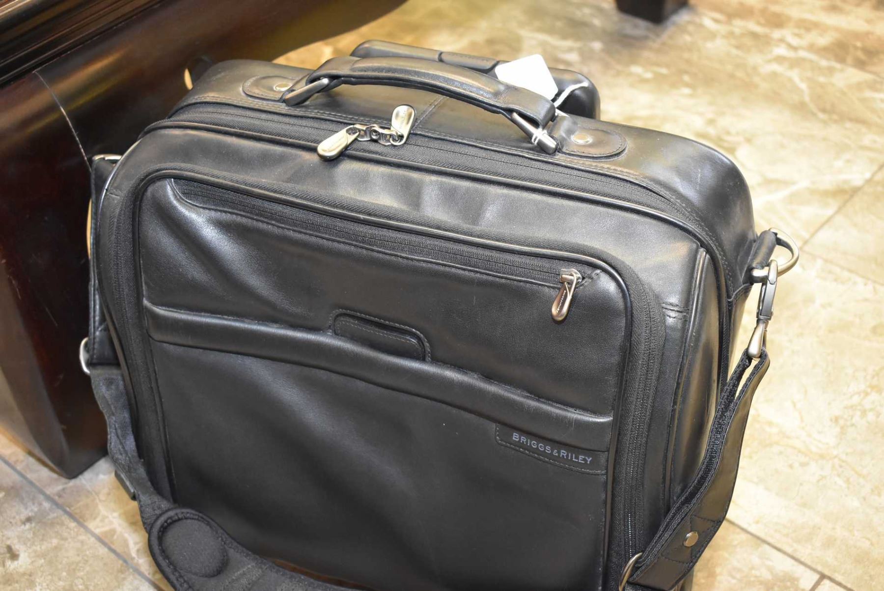Leather Briggs & Riley leather carry-on bag and pull-out handle and wheels
