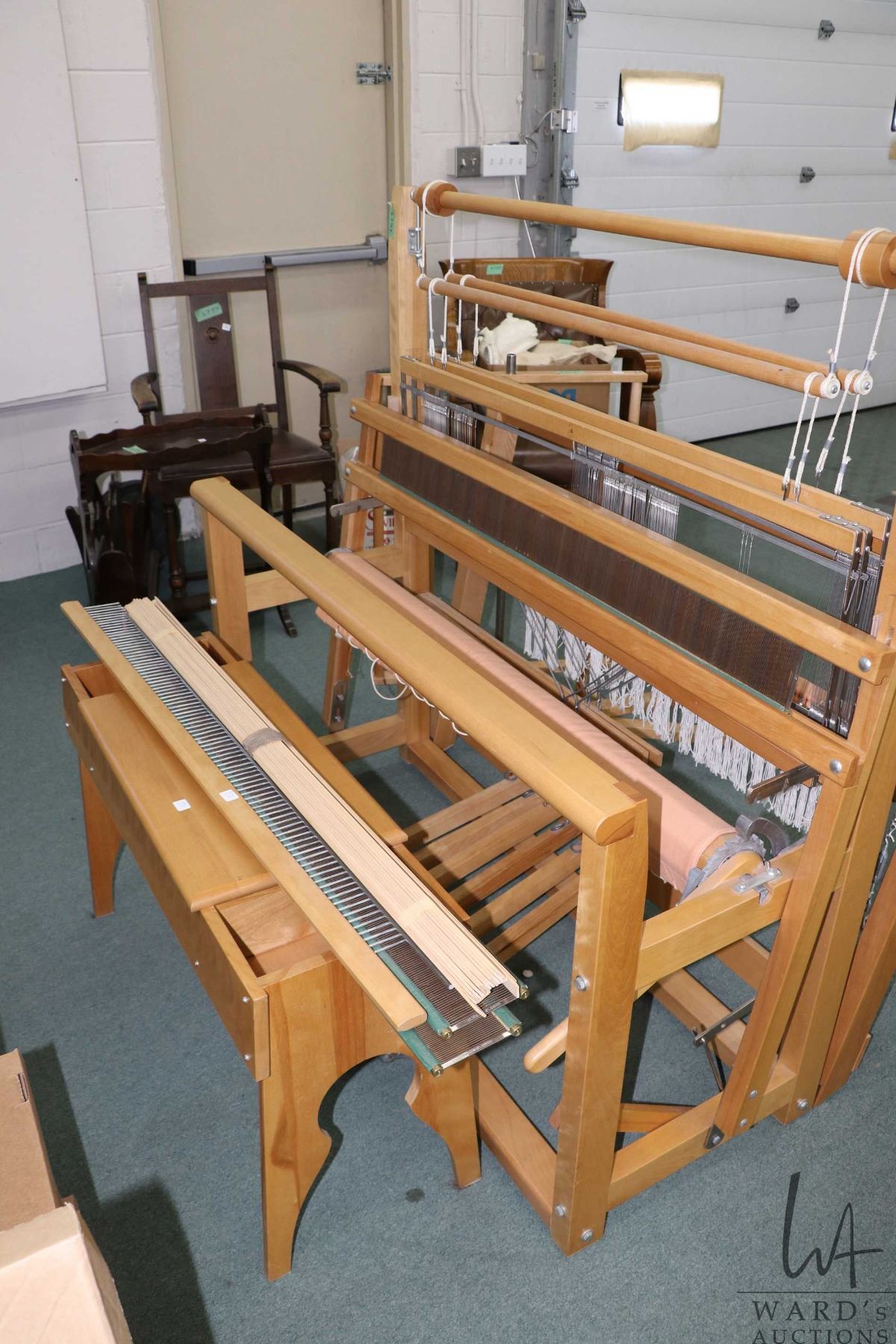 Leclerc 46" "Fanny" floor weaving loom and a selection of accessories including bench, wool winder etc.