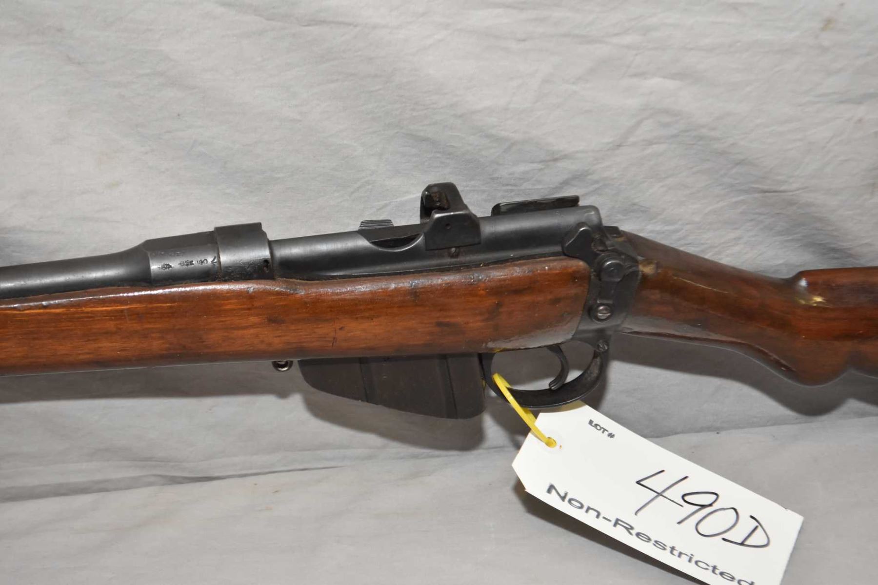 Lee Enfield BSA Dated 1915 No.1 Mark III .303 Brit Cal Mag Fed Sporteriized Bolt Action Rifle w/ 25 1/4" bbl [ blued finish, barrel sights, revarnished wood w/ various marks and scratches, sling studs, 10 shot mag , Missing the Bolt ] Ser # Y16593