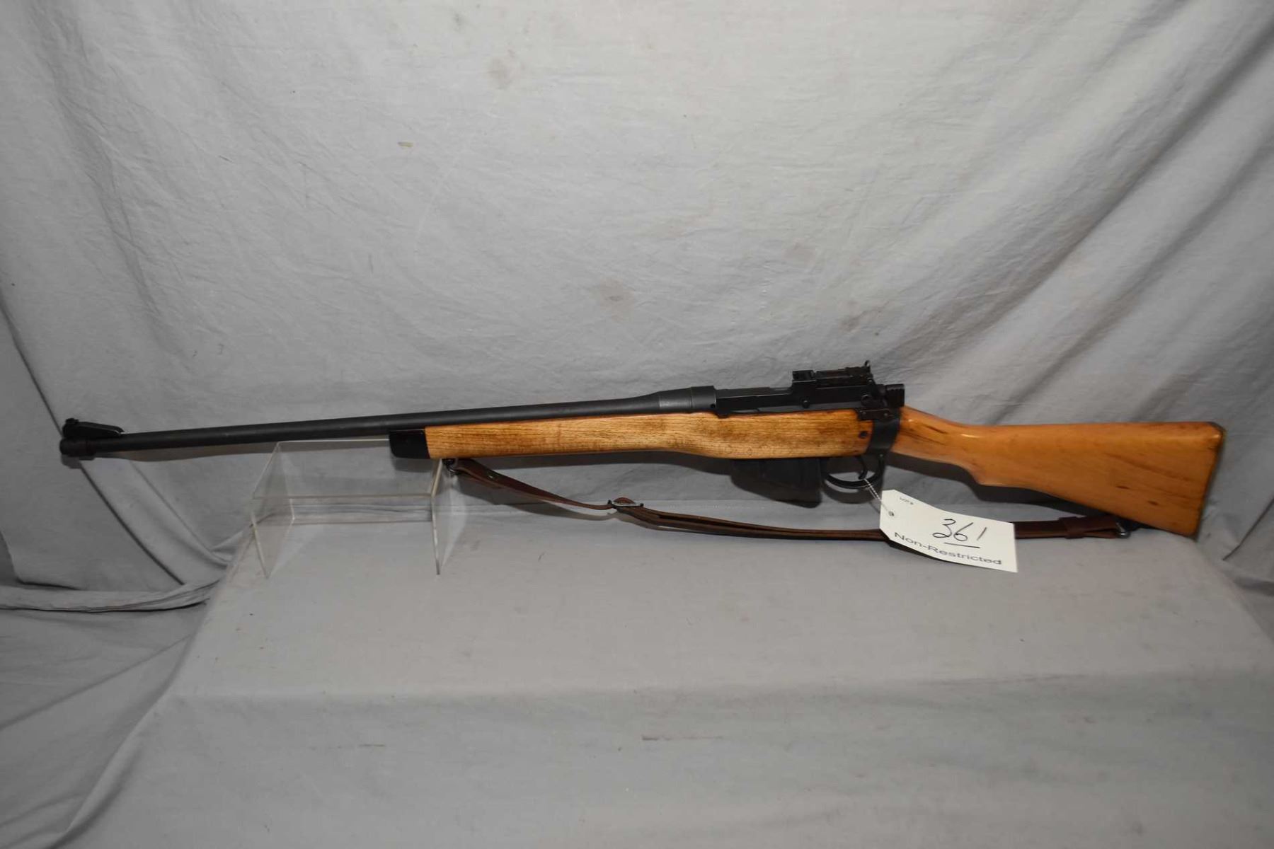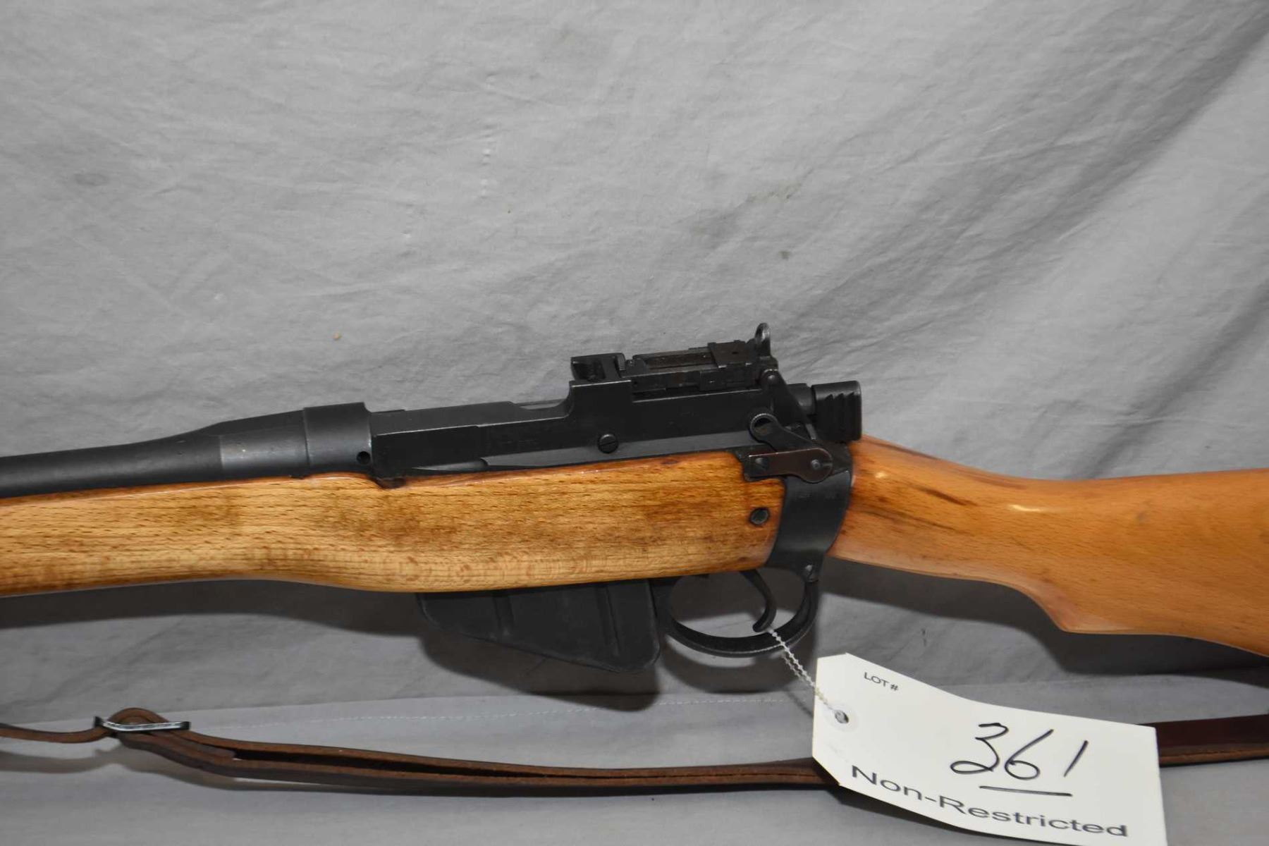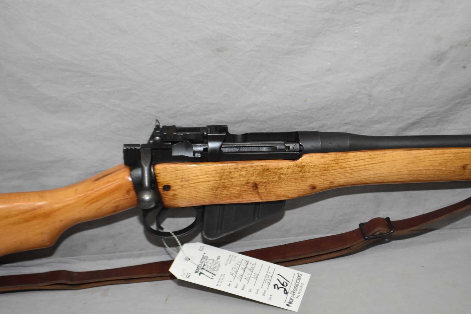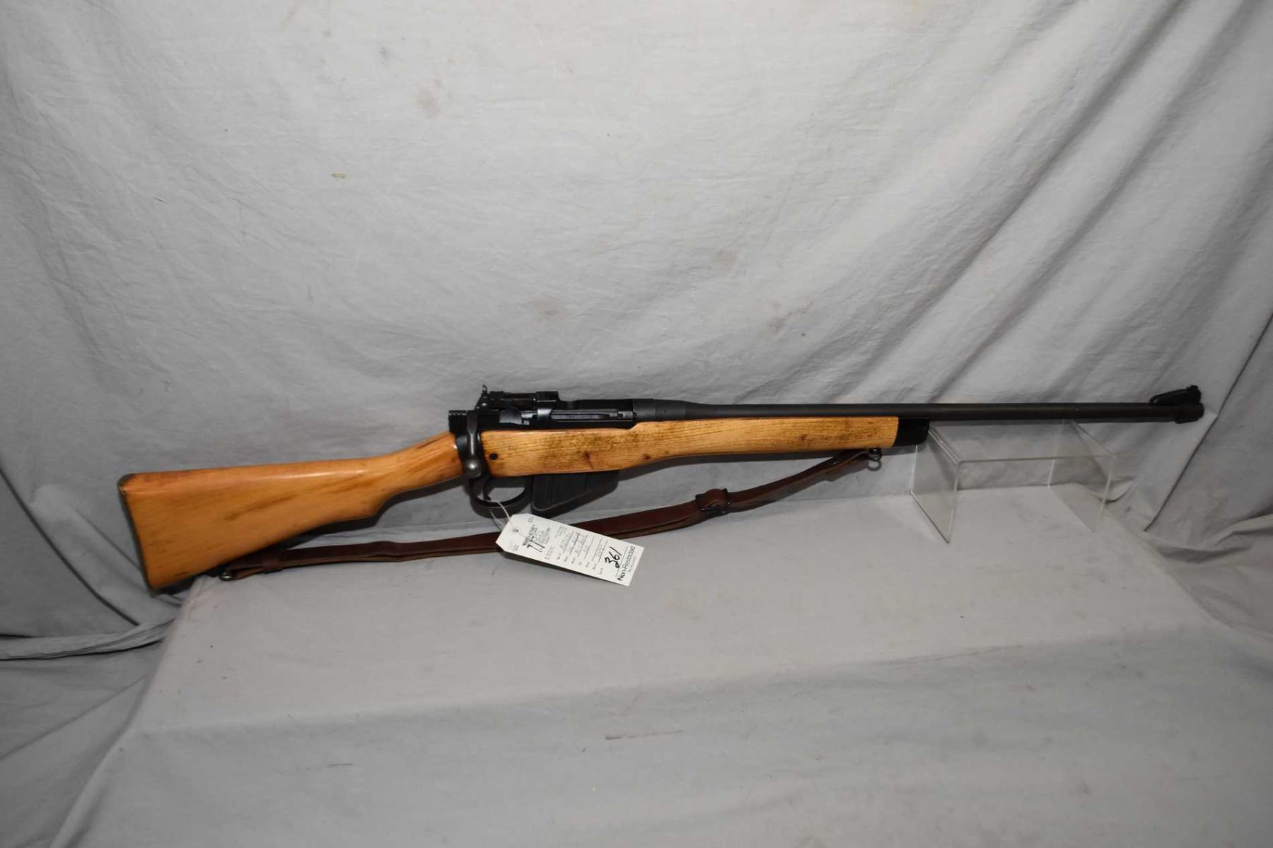 Lee Enfield F57 FRT Model No.4 Mark 2 .303 Brit Cal Mag Fed Bolt Action Sporterized Rifle w/ 23 1/2" bbl [ blued finish, barrel sights, good sporterized wood with leather sling ] Ser # A23584
