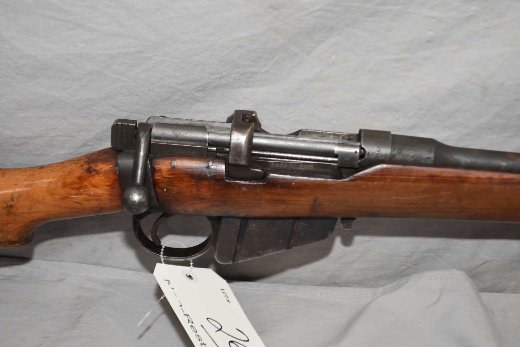 Lee Enfield ( Lithgow ) Dated 1941 Model No.1 Mark III* .303 Brit Cal Mag Fed Bolt Action Sporterized Rifle w/ 25 1/4" bbl [ fading blue finish, barrel sights, with some surface rust to metal, and pencil engraved numbers on right side of receiver, butt stock stamped Australia with rear sling swivel, some marks and scratches to wood and metal ] Ser # C12709