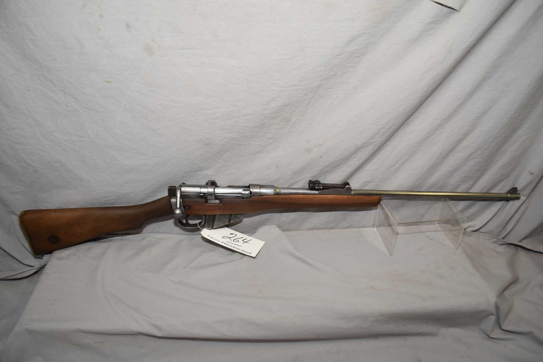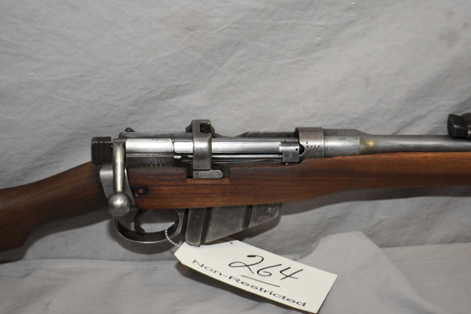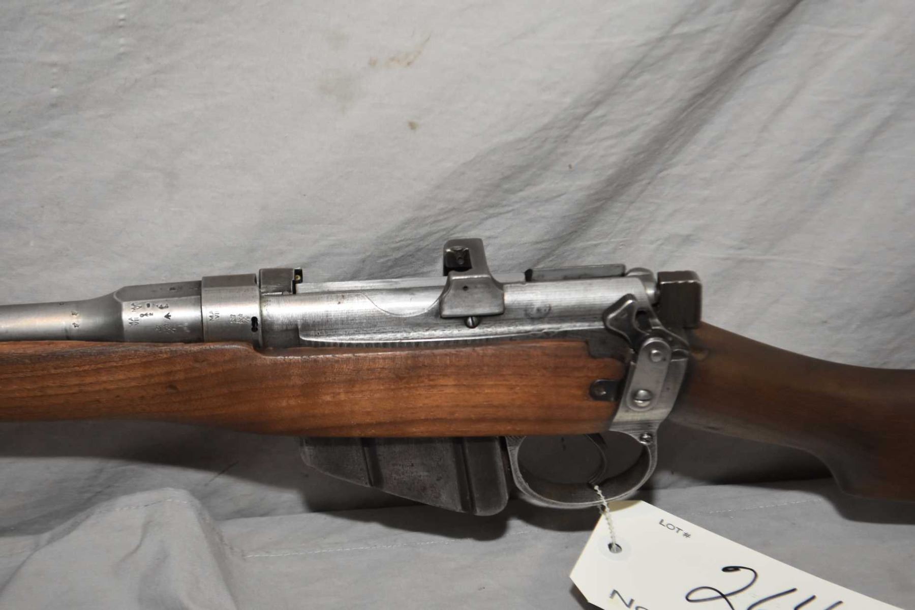 Lee Enfield ( Lithgow ) Dated 1943 No. 1 Mark III* .303 Brit Cal Mag Fed Bolt Action Sporterized Rifle w/ 25 1/4" bbl [ traces of blue finish fading to grey in most areas, barrel sights, good sporterized stock, missing inserts, sling swivels, etc. ] Ser # F9715
