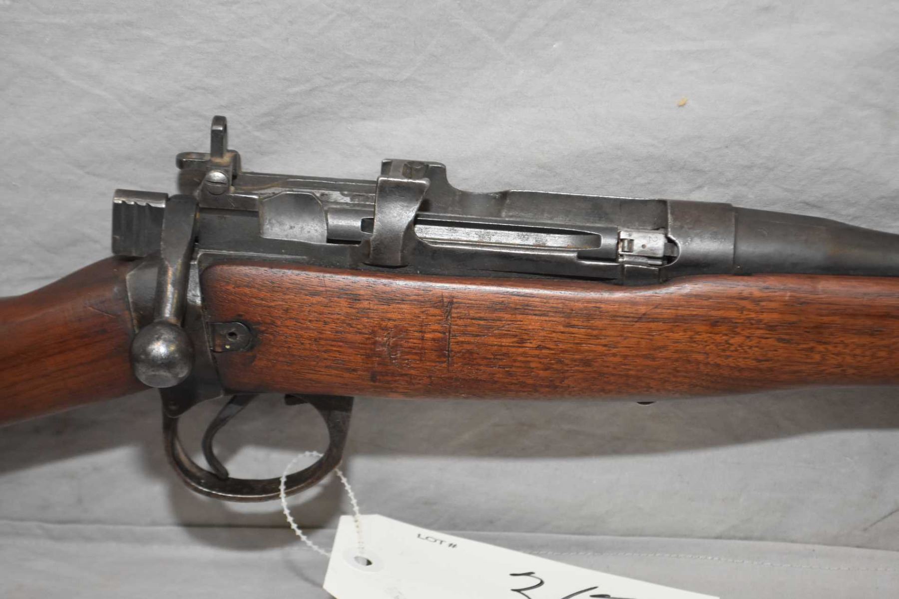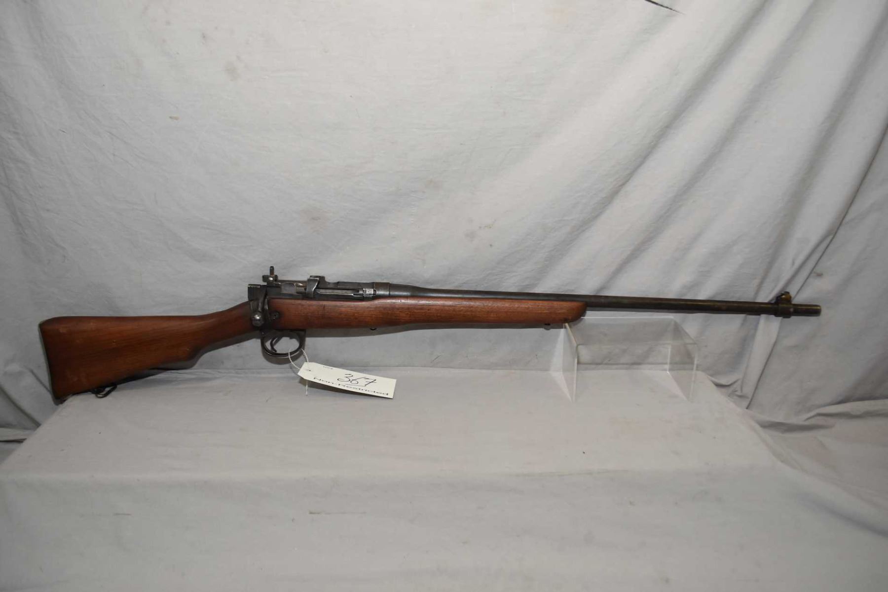 Lee Enfield Long Branch Dated 1943 .303 Brit Cal Mag Fed Bolt Action Sporterized Rifle w/ 25 1/4" bbl [ fading blue finish with marks and scratches, braized front sight, sporterized wood with some sanding at wrist, rear sling swivel, piece chipped and sanded at toe, missing the mag ] Ser # 30L8895
