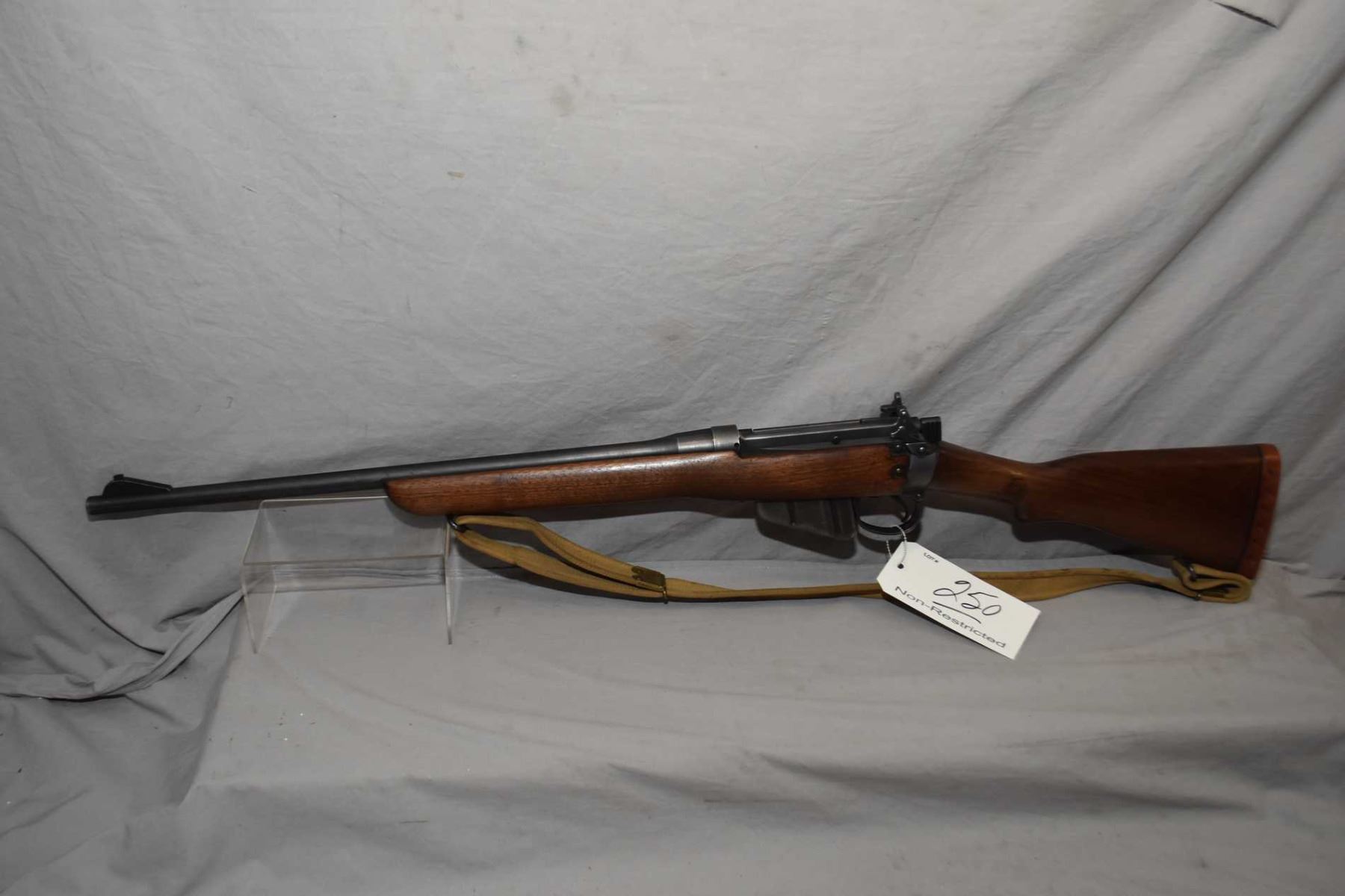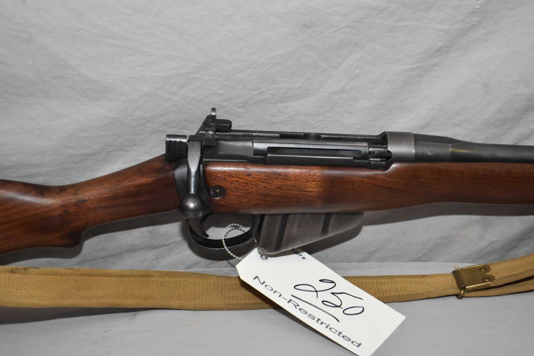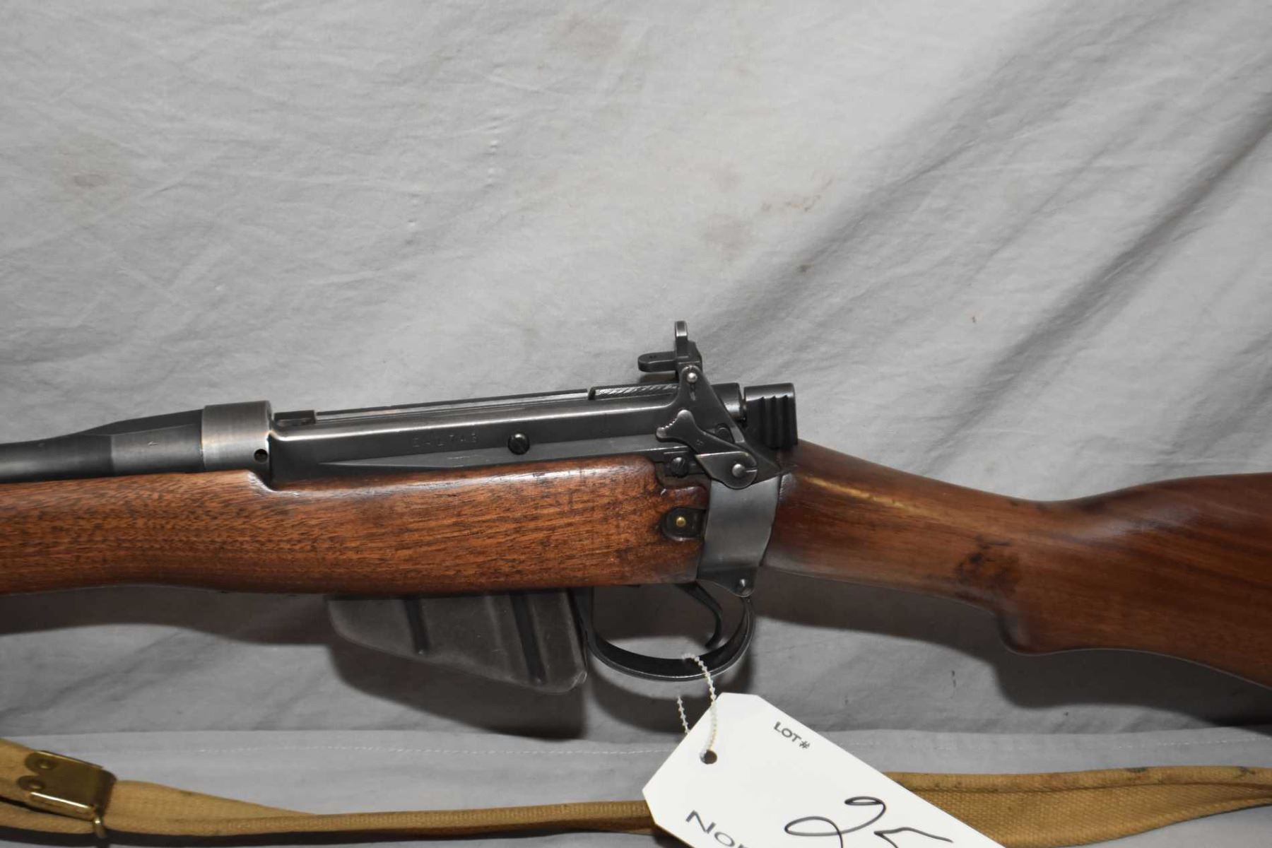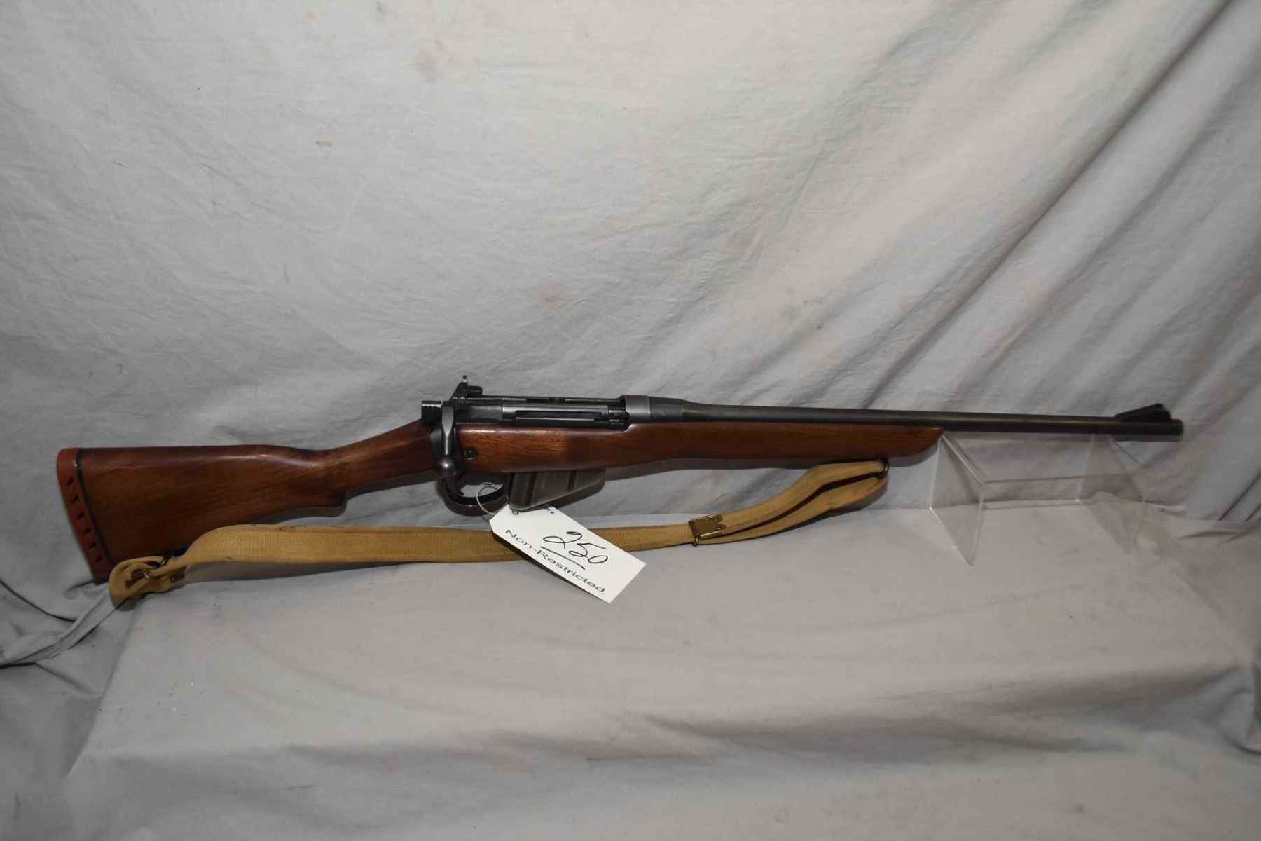 Lee Enfield Model E.A.L. .303 Brit Cal Mag Fed Bolt Action Sporterized Rifle w/ 21" bbl [ blued finish, barrel sights, some fading to mag, good sporterized wood with red recoil pad, web sling ] Ser # 743