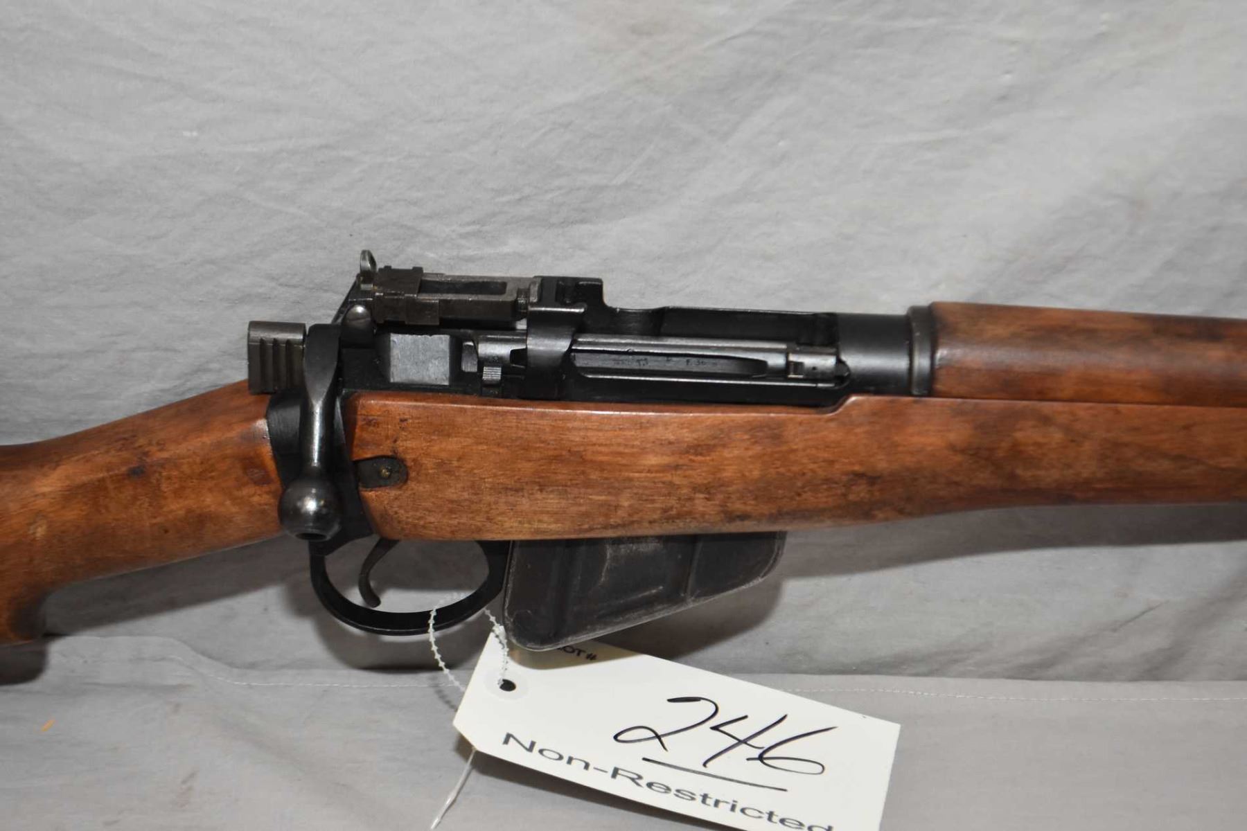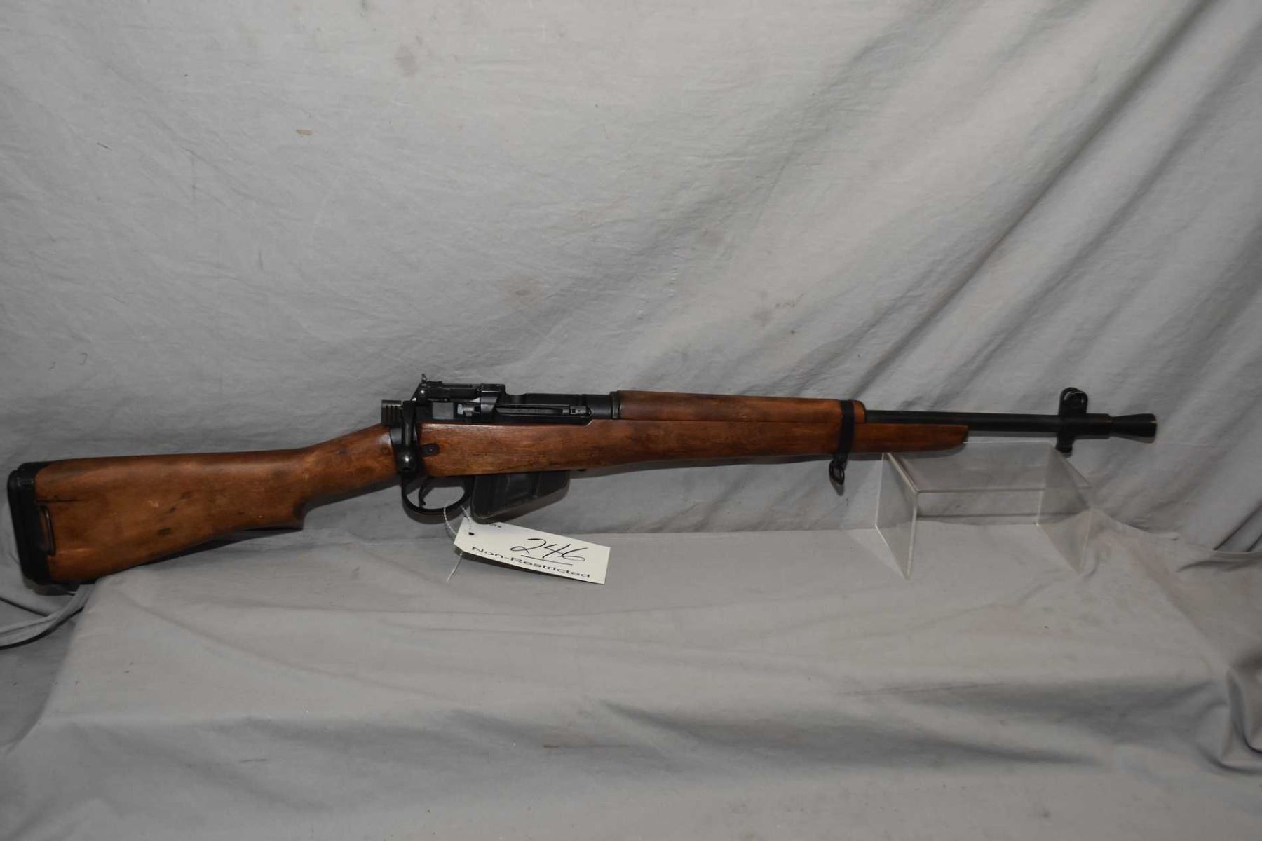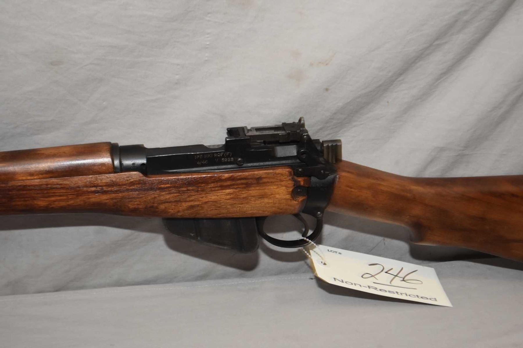 Lee Enfield Model No 5 Mark 1 ROF ( F ) Dated 4/ 46 .303 Brit Cal Mag Fed Bolt Action Full Wood Military Jungle Carbine w/ 20" bbl [ blued finish, barrel sights, appears all original and all matching including the stock, magazine does not have a serial number, all components have English marks, the rear sight is correct 800 Yard Dial, appears v - good plus ] Ser # V5222
