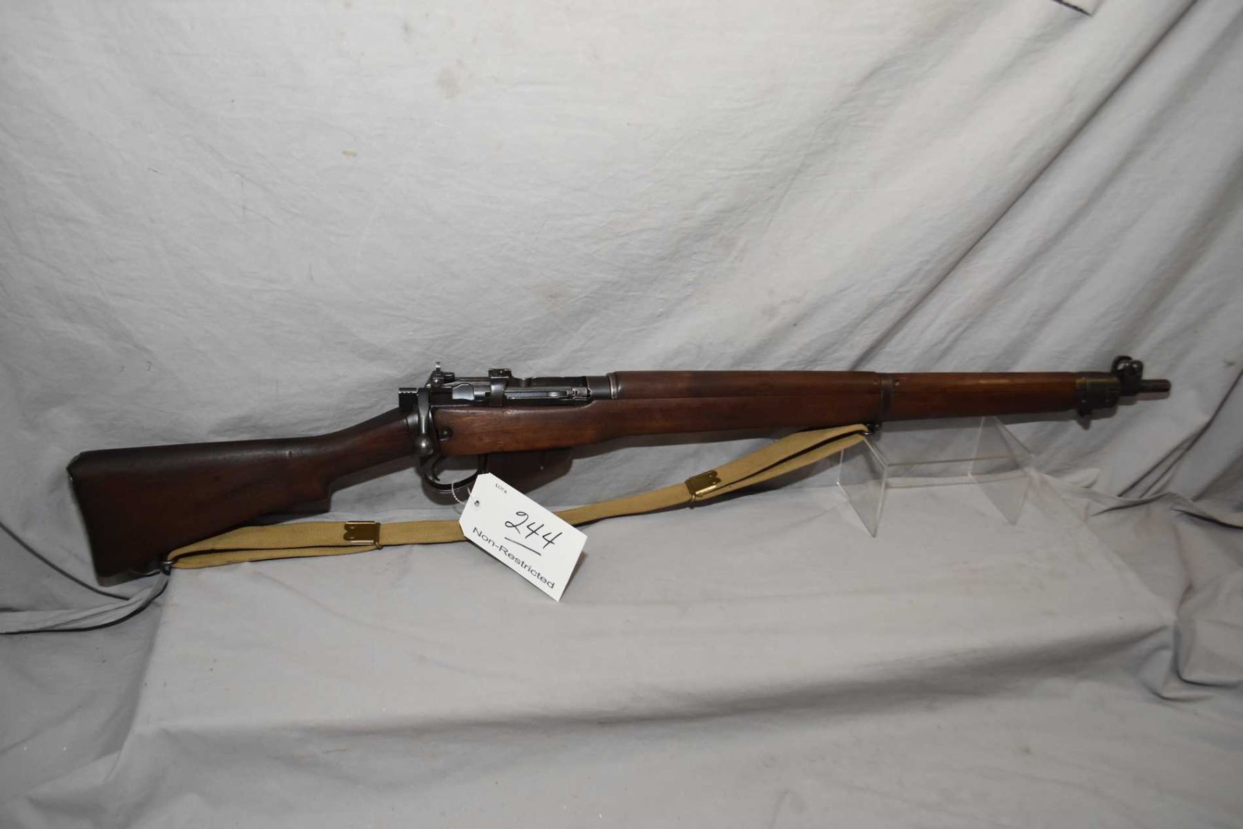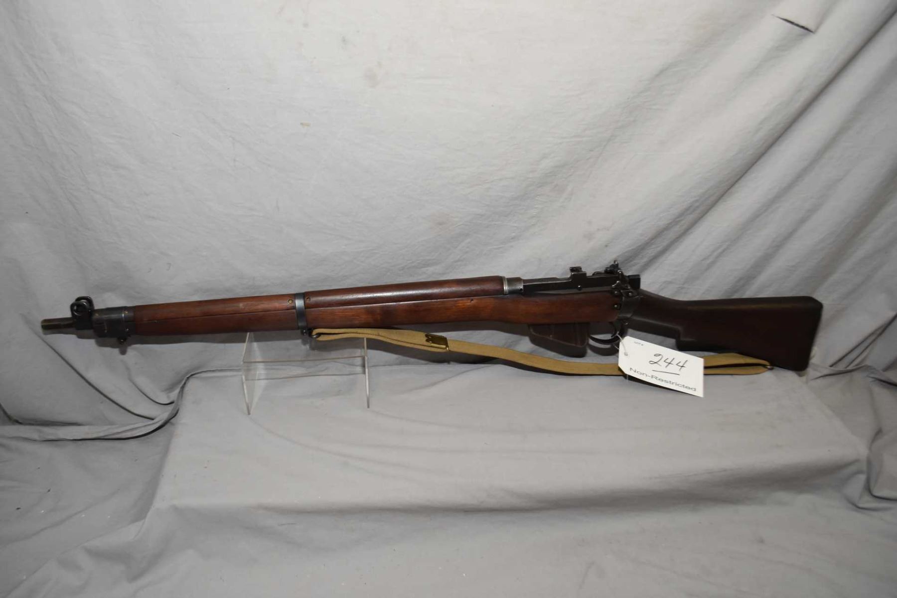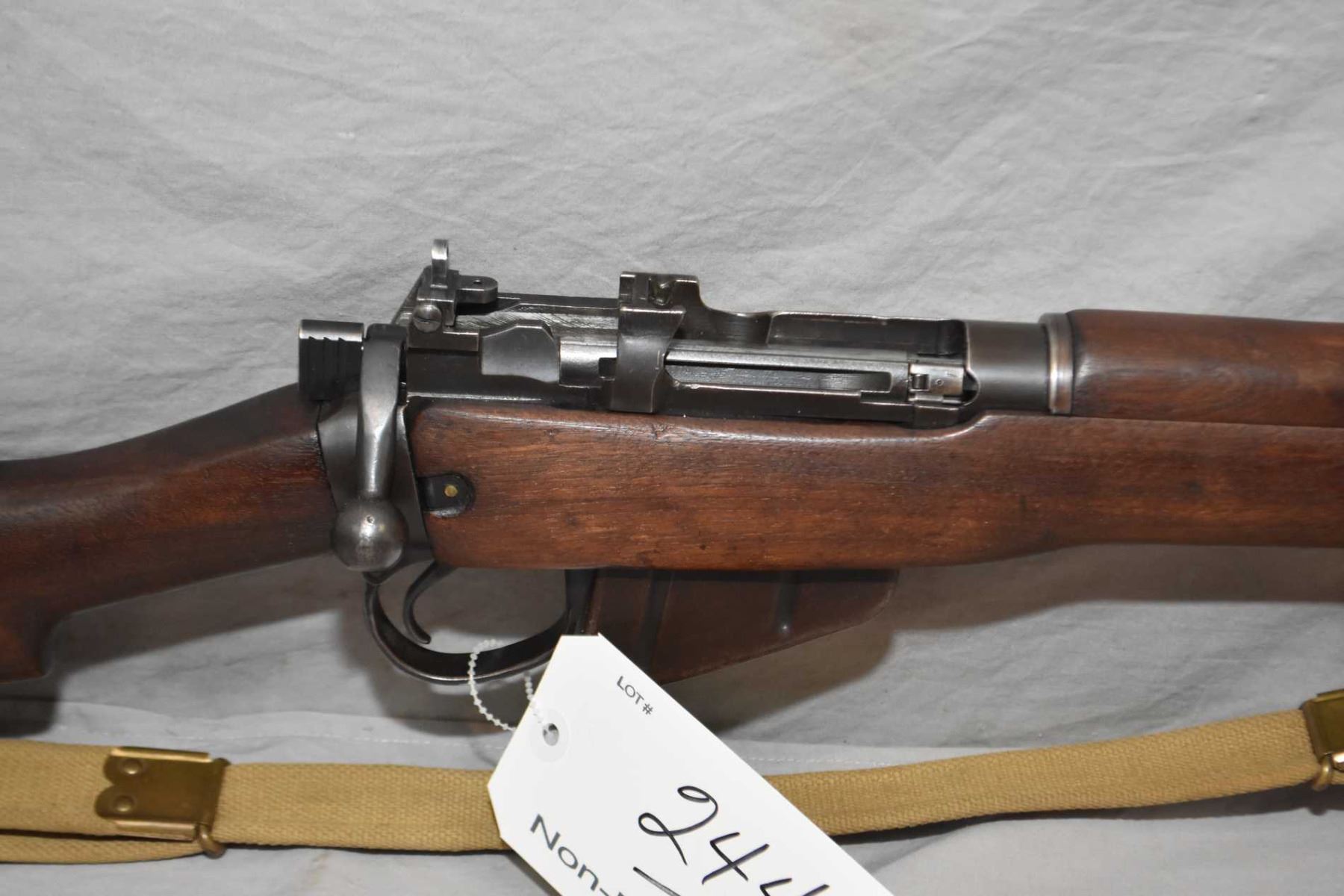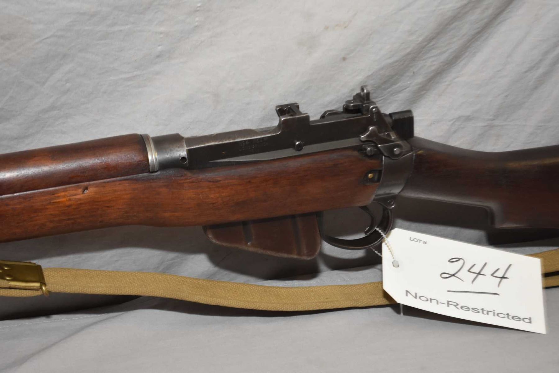 Lee Enfield No. 4 MK 1* Long Branch Dated 1944 .303 Brit Cal Mag Fed Bolt Action Full Wood Military Rifle w/ 25 1/4" bbl [ all original and all matching ( the magazine does not have a serial number ) , all components of the rifle show Long Branch "LB", ( together ) and / or Canadian C Broad Arrow, the original owner of the rifle was a Home Guardsman who was stationed in Manitoba, and the butt and butt plate show this story as it shows evidence of many times being stamped into the ground, also has a C Broad Arrow marked web sling ] Ser # 76L3611