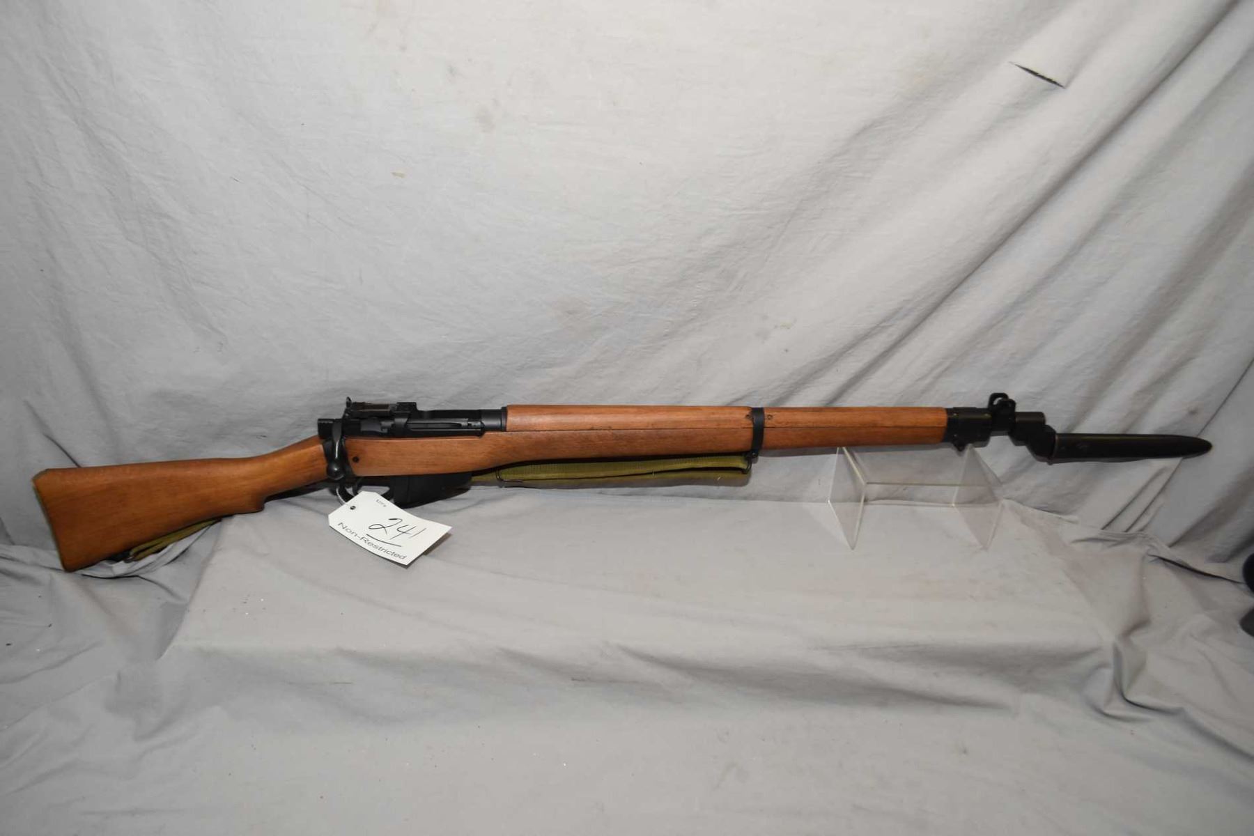 Lee Enfield No. 4 Mark 2 ( F ) Dated 12/54 .303 Brit Cal Mag Fed Bolt Action Full Wood Military Rifle w/ 25 1/4" bbl [ appears unissued, blued finish, barrel sights, matching numbered mag, and other parts, including the wood, this rifle is from the Irish Contract, it has the serial number of PF332012 which is right in the middle of the Irish Contract, being from PF309348 to PF359347, all the components of this rifle have English marks, rifle appears never fired, it has green web sling, and original 1954 No. 9 Mk 1 blade bayonet w/ scabbard that came with the rifle ] Ser # PF332012