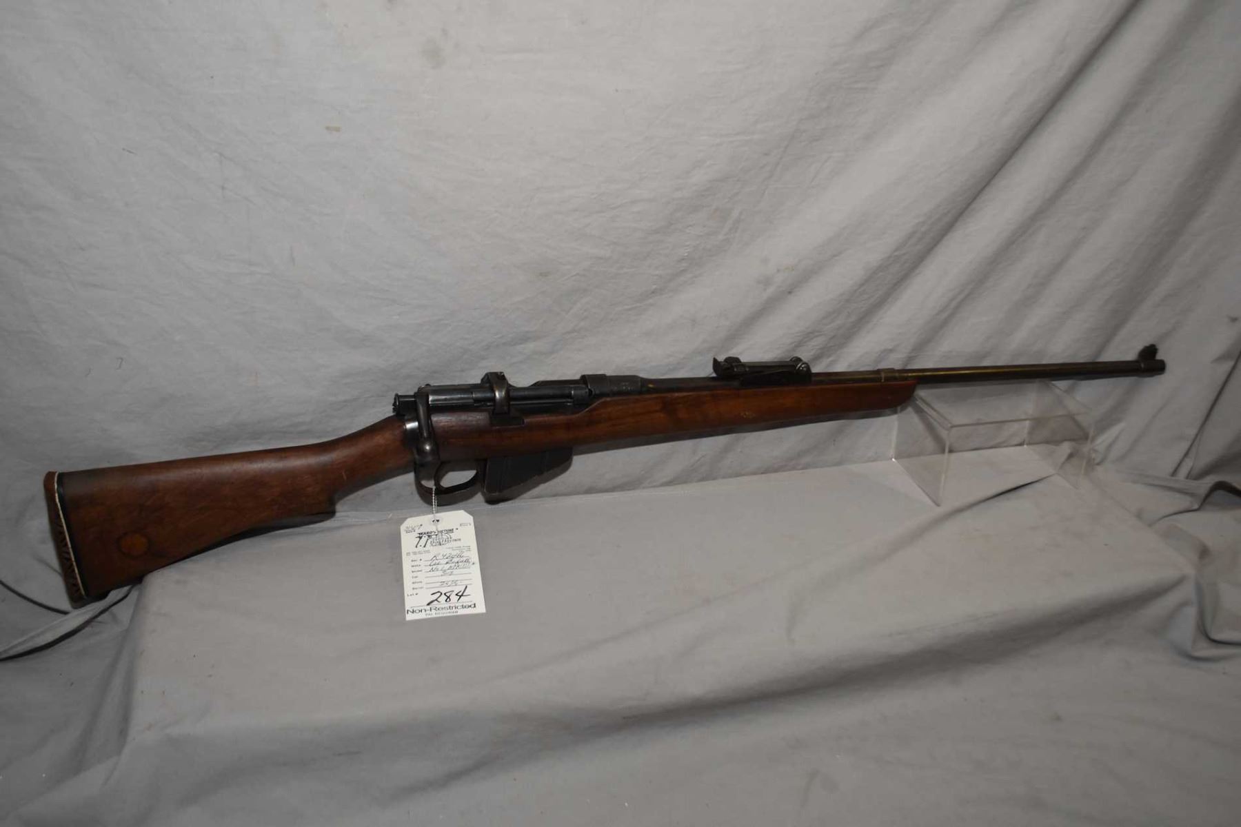 Lee Enfield Sht Le Dated 1918 Model No. 1 Mark III* .303 Brit Cal Mag Fed Bolt Action Sporterized Rifle w/ 25 1/4" bbl [ faded blue finish turning brown, matching numbered bolt, barrel sights with wind adjustment, various marks and scratches to metal, some surface rust to mag, good sporterized wood with some filler, and dried recoil pad ] Ser # R42046