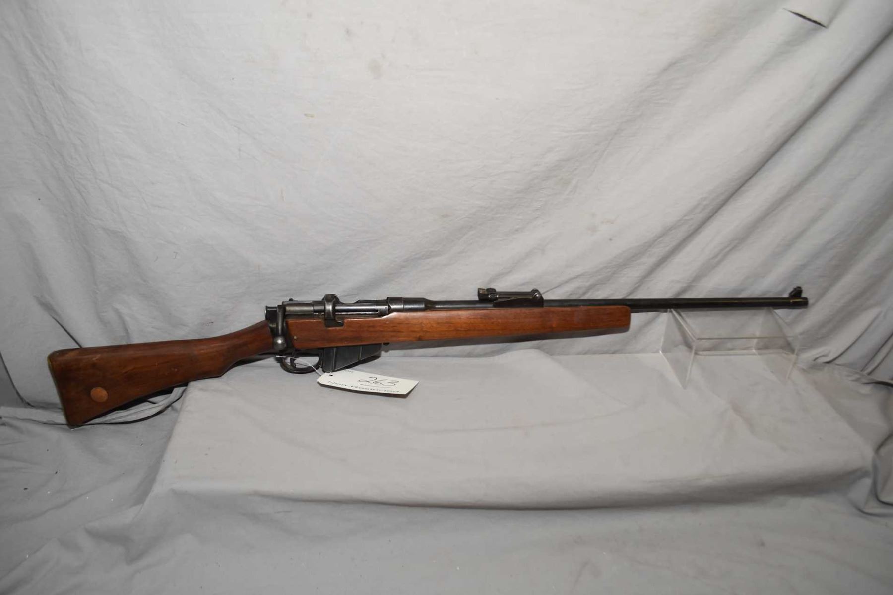 Lee Enfield Unmarked No. 1 Mark III .303 Brit Cal Sporterized Rifle w/ 25 1/4" bbl [ blued finish, barrel sights, sporterized wood with large gouge on left side butt stock by toe, sling holes filled, some fading marks and scratches to wood and metal ] Ser # C7135