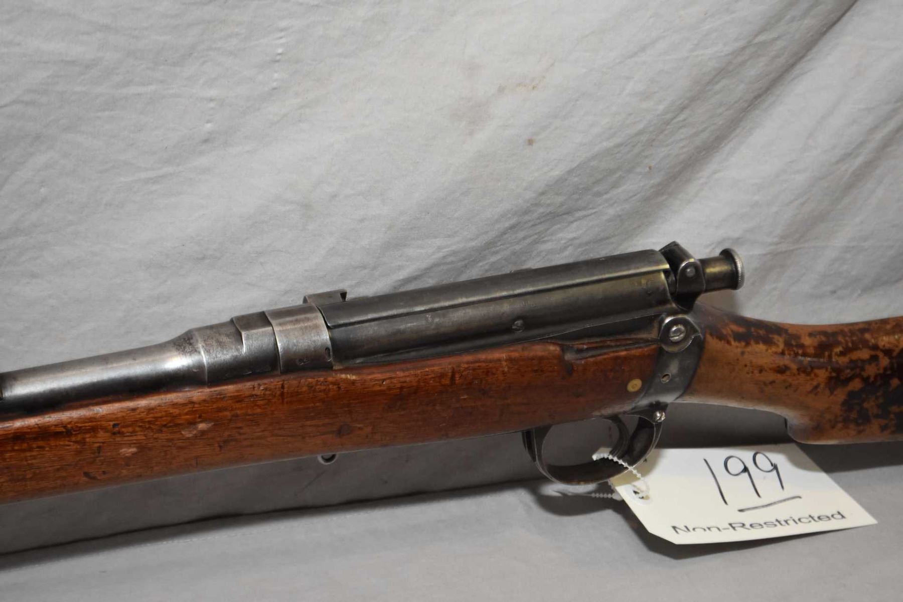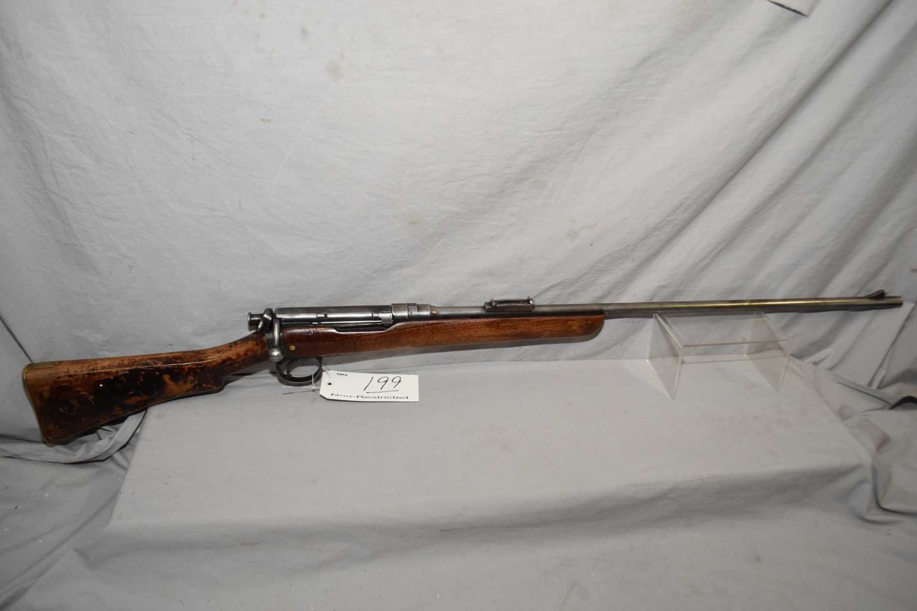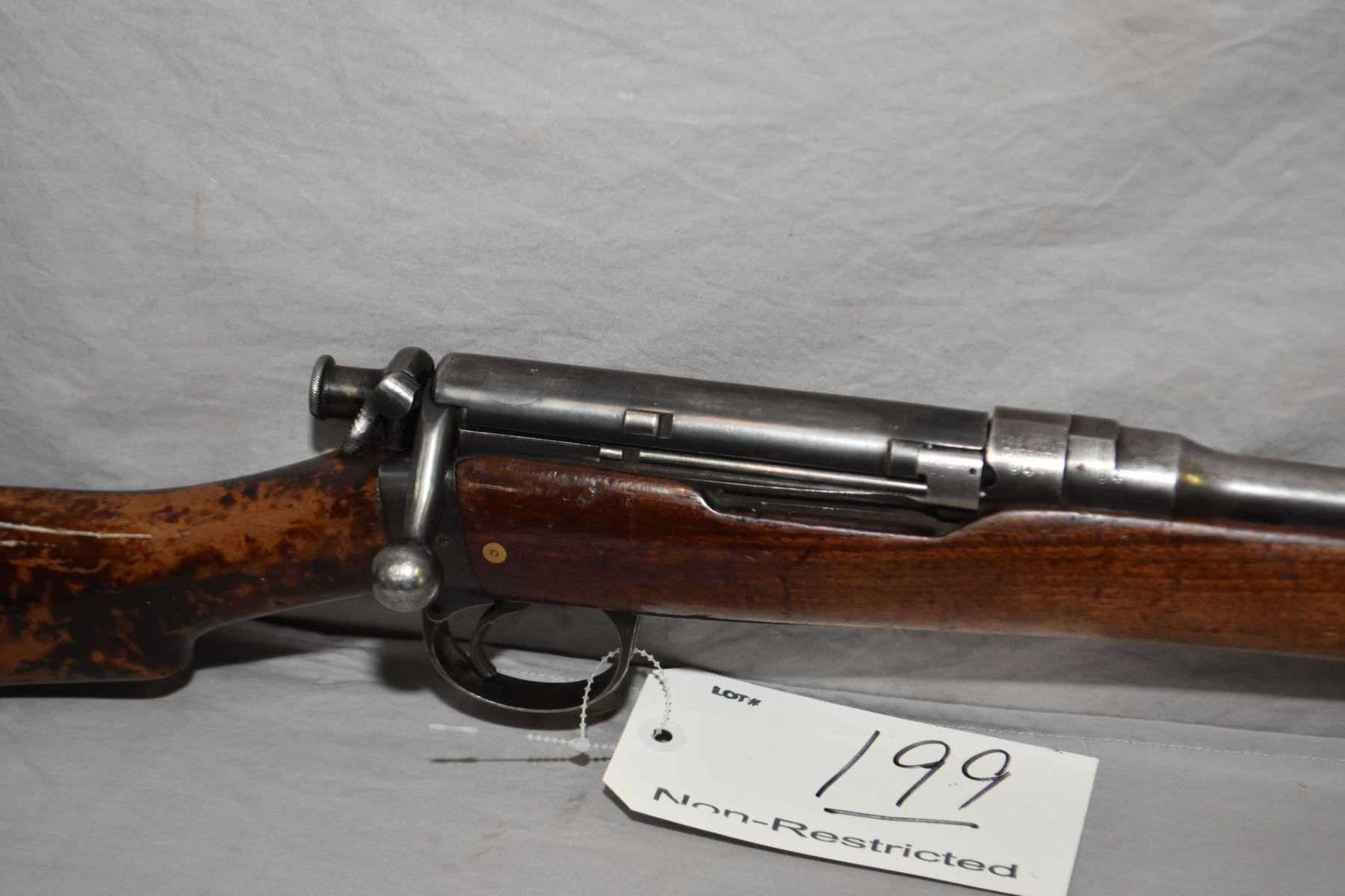 Lee Speed ( LSA ) Mark II* .303 Brit Cal Mag Fed Bolt Action Rifle w/ 30 1/4" bbl [ faded blue finish to grey in some areas, with barrel sights, dust cover, sporterized wood with various marks, scratches and chipping varnish, missing the mag, Note : Low Serial Number ] Ser # 84