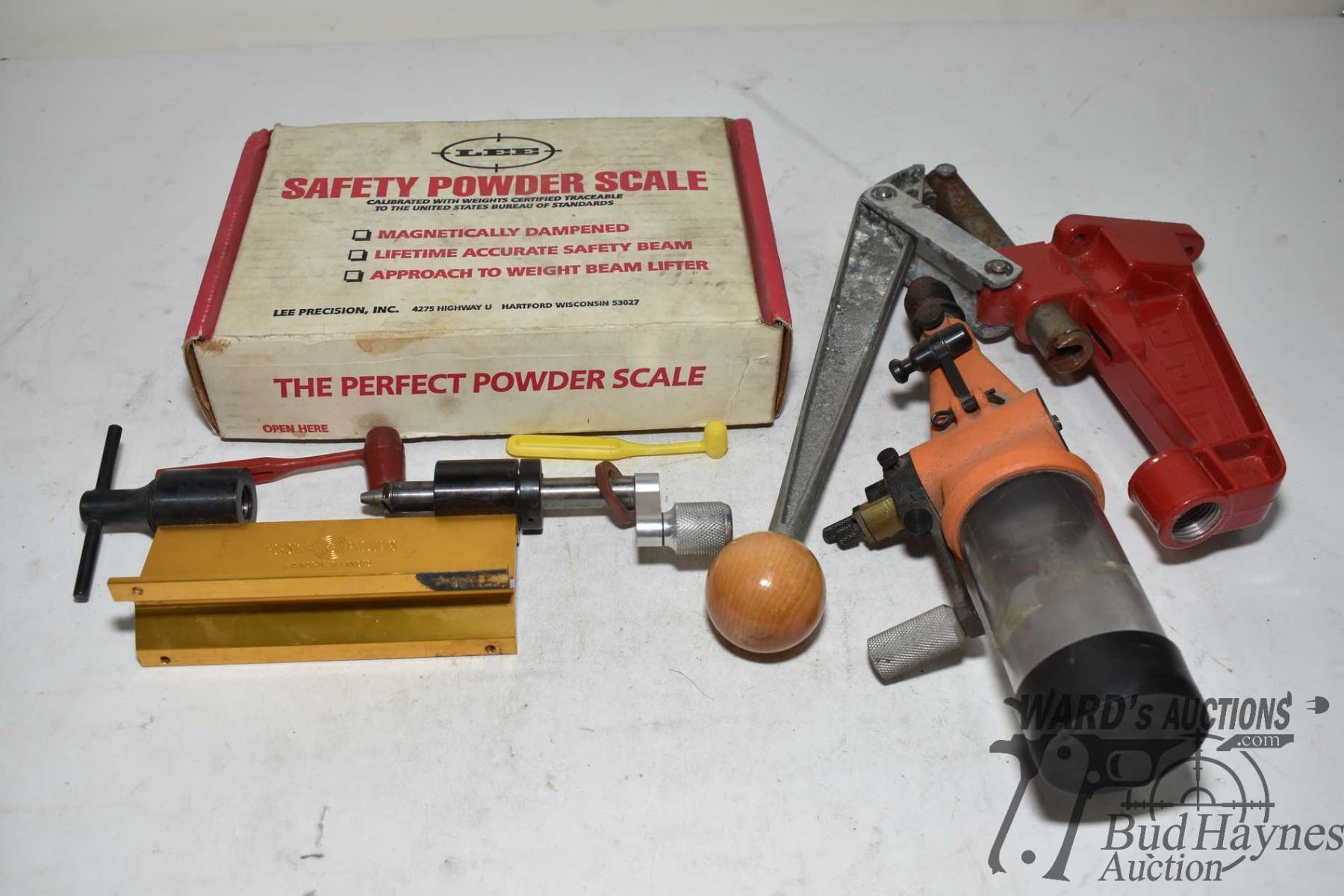 Lee bullet press and safety powder scale, Lyman powder measure and a Forsters trimmer
