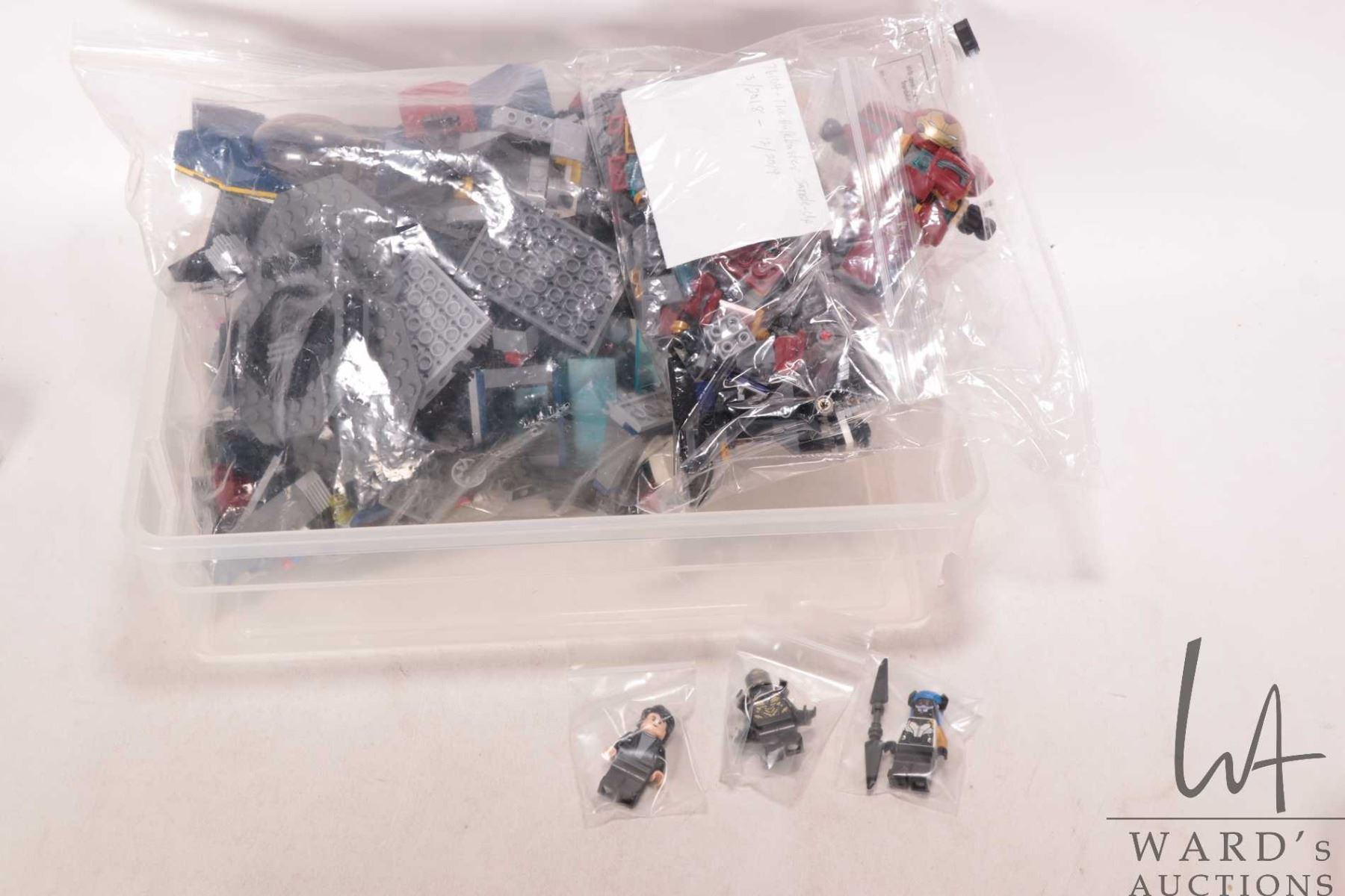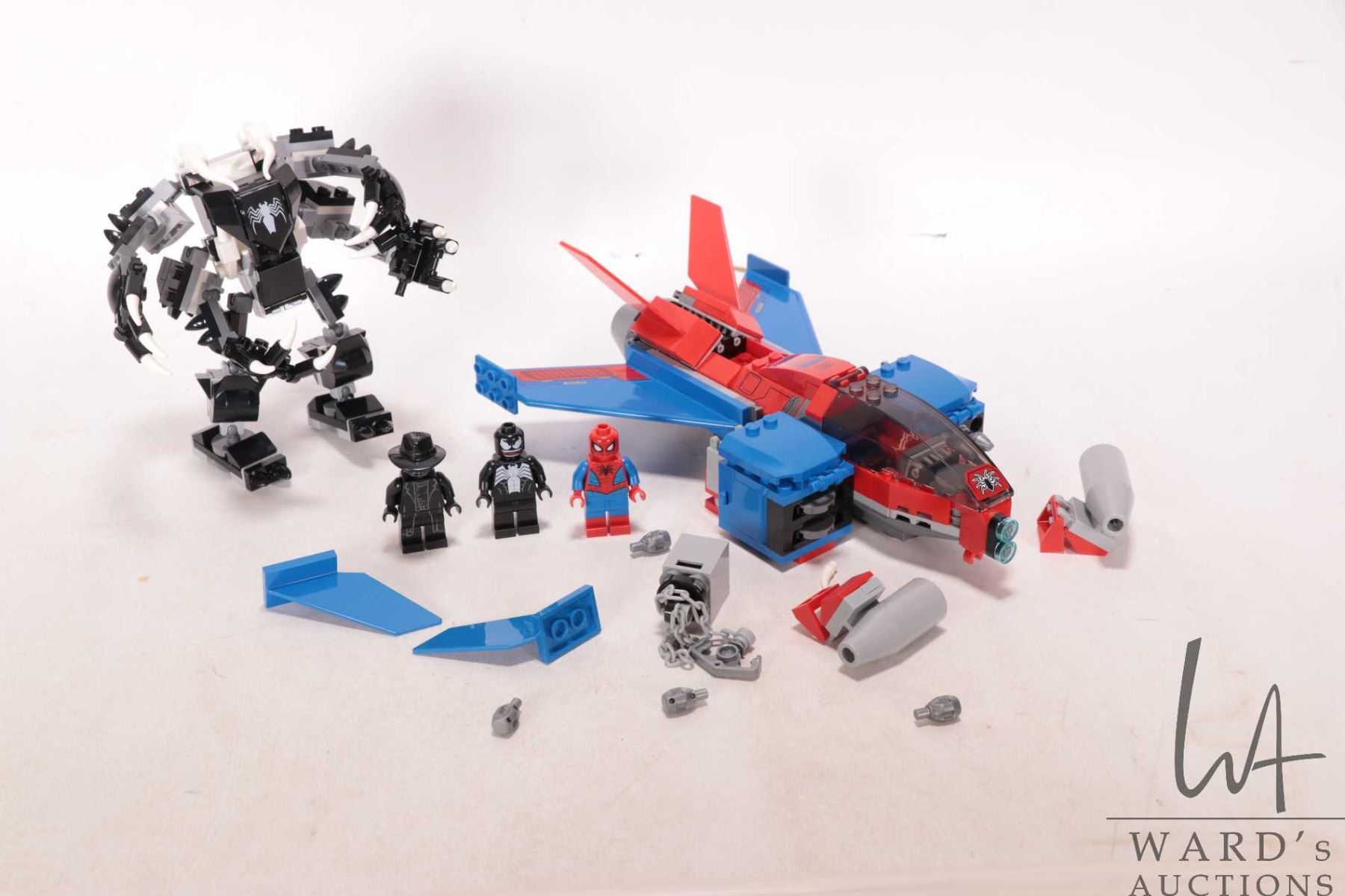 Lego "Marvel Super Heroes" no. 6868 Hulk's Helicarrier Breakout pre-built kit, no manual, and no box, no. 76104 The Hulkbuster Smash-Up, no box, no manual, some Minifigures and no. 76150 Spiderjet vs. Venom Mech. pre-built kit, no box, no manuel and two Minifigures. Completeness not confirmed or guaranteed. Recommended buy as loose parts. Bid accordingly