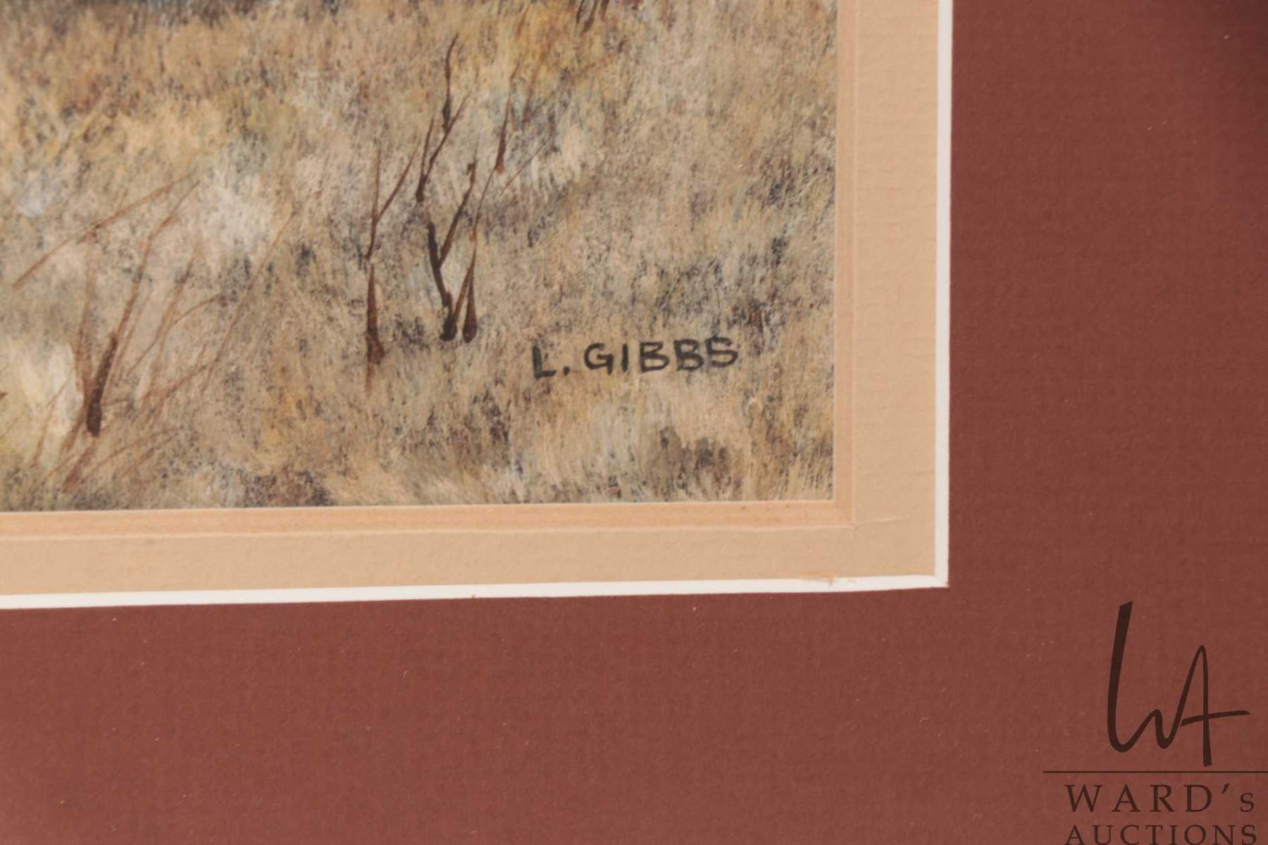 Len Gibb, framed original watercolour painting, titled on verso " Shasta and Dolly, L.J. Gibbs, Loca