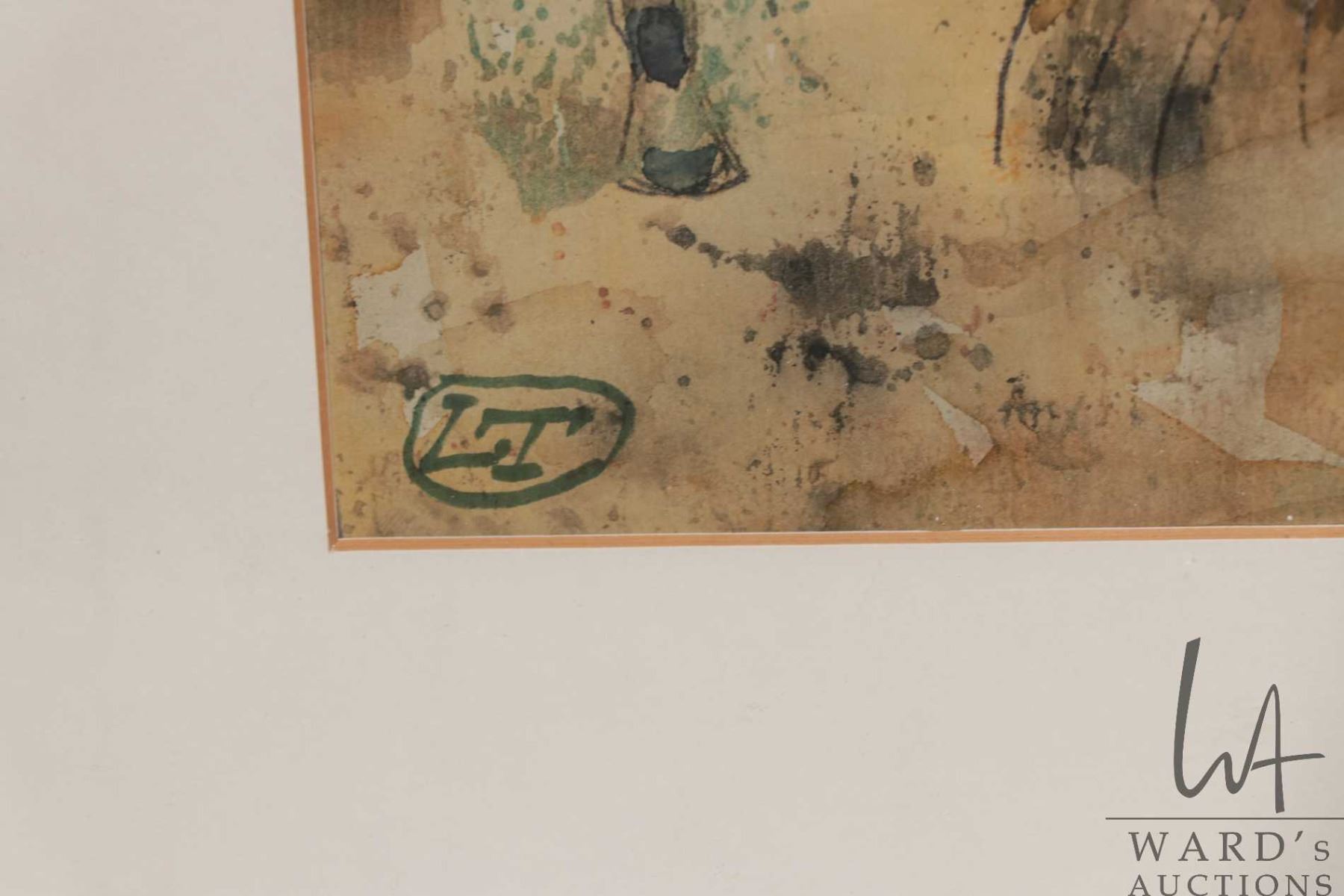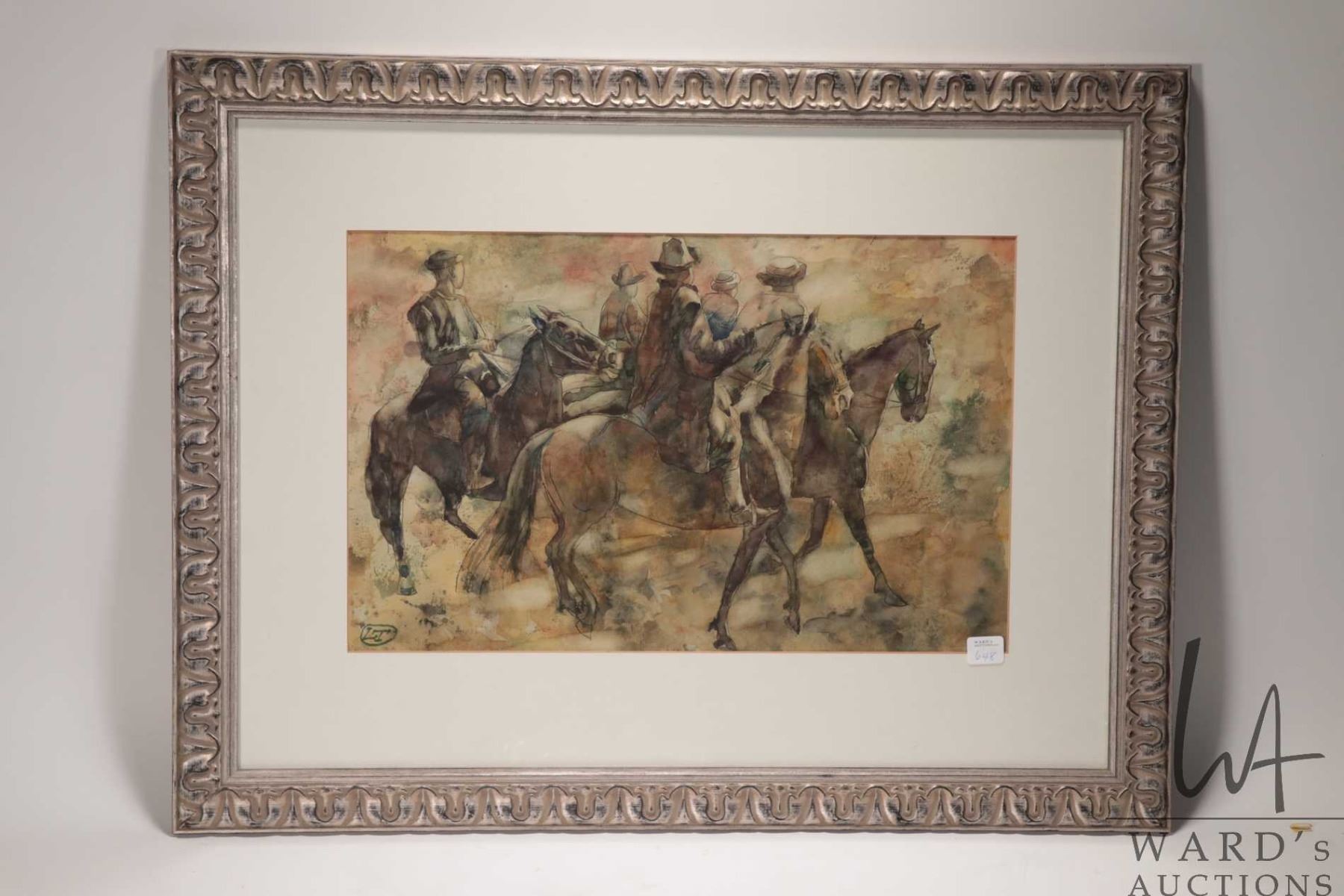 Leonard Tan, framed original watercolour painting of Turkish cowboys on horseback, 12" X 18"