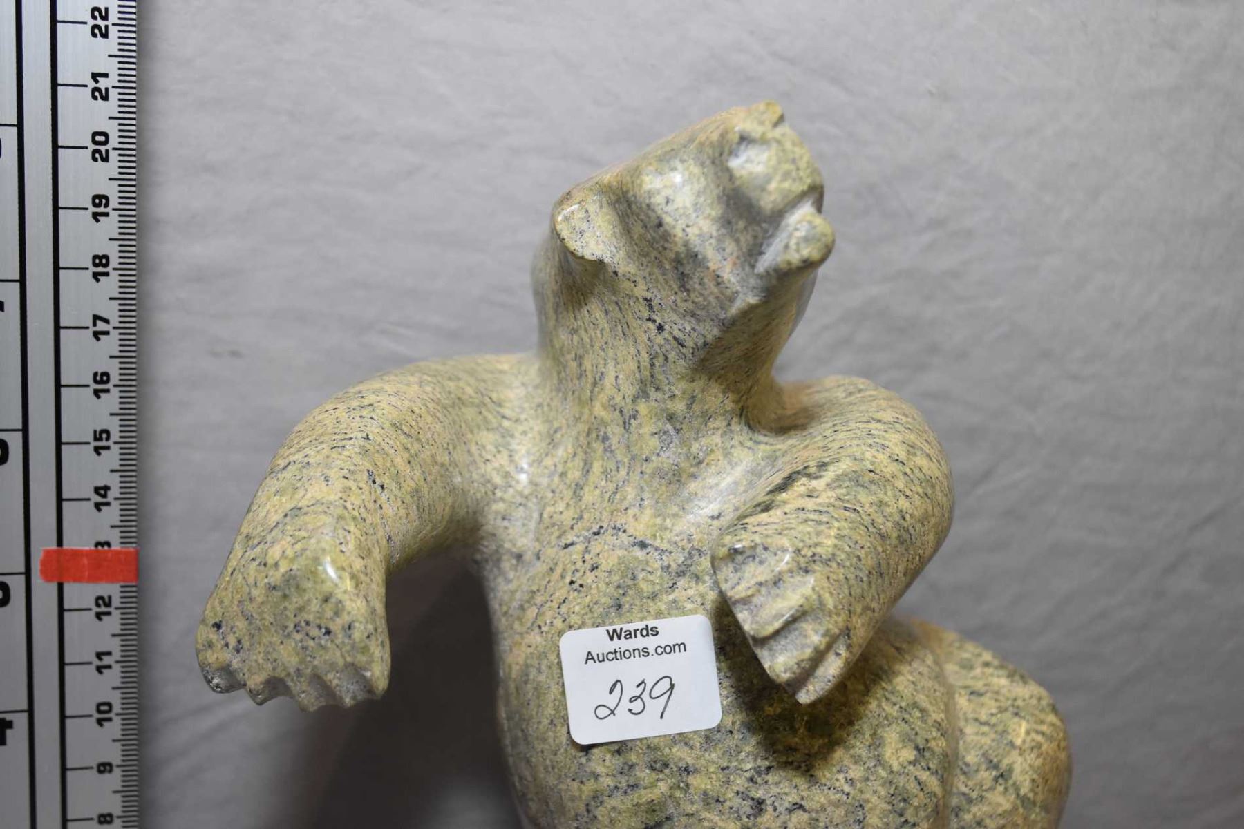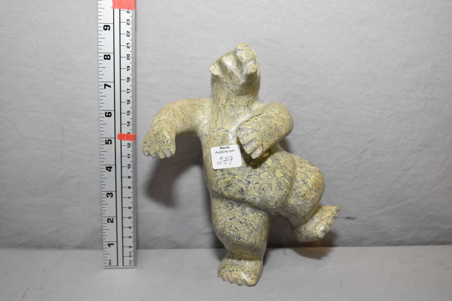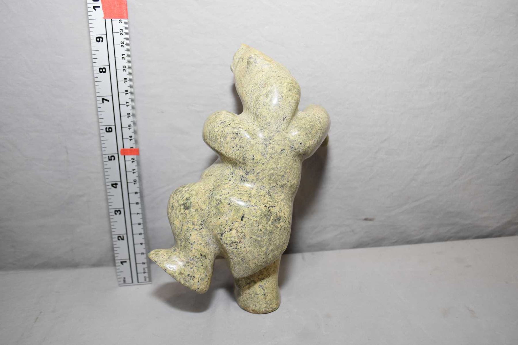 Light green carved soapstone dancing bear 9" in height, purchased in Cape Dorset, NU