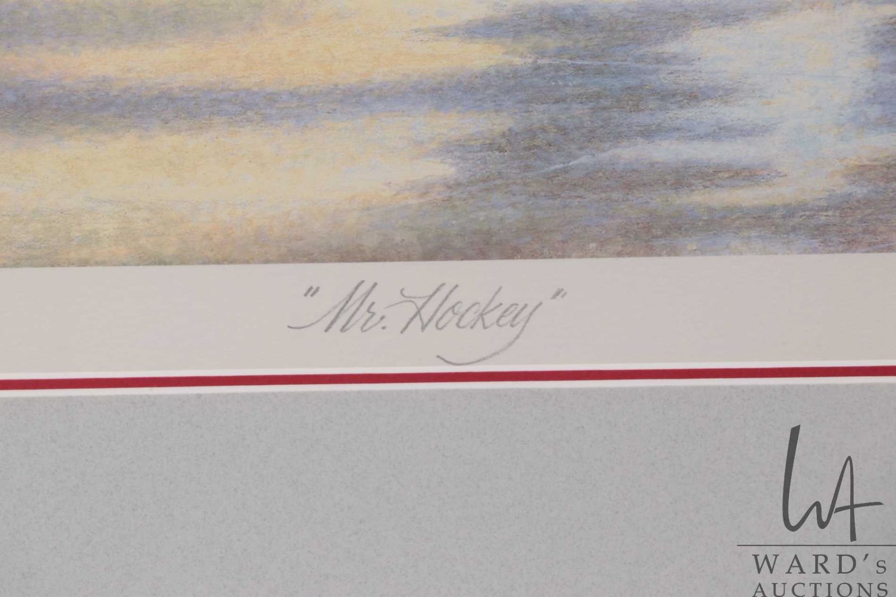 Limited edition print titled "Mr. Hockey" pencil signed by artist James Lumbers, 6810/9999, overall