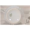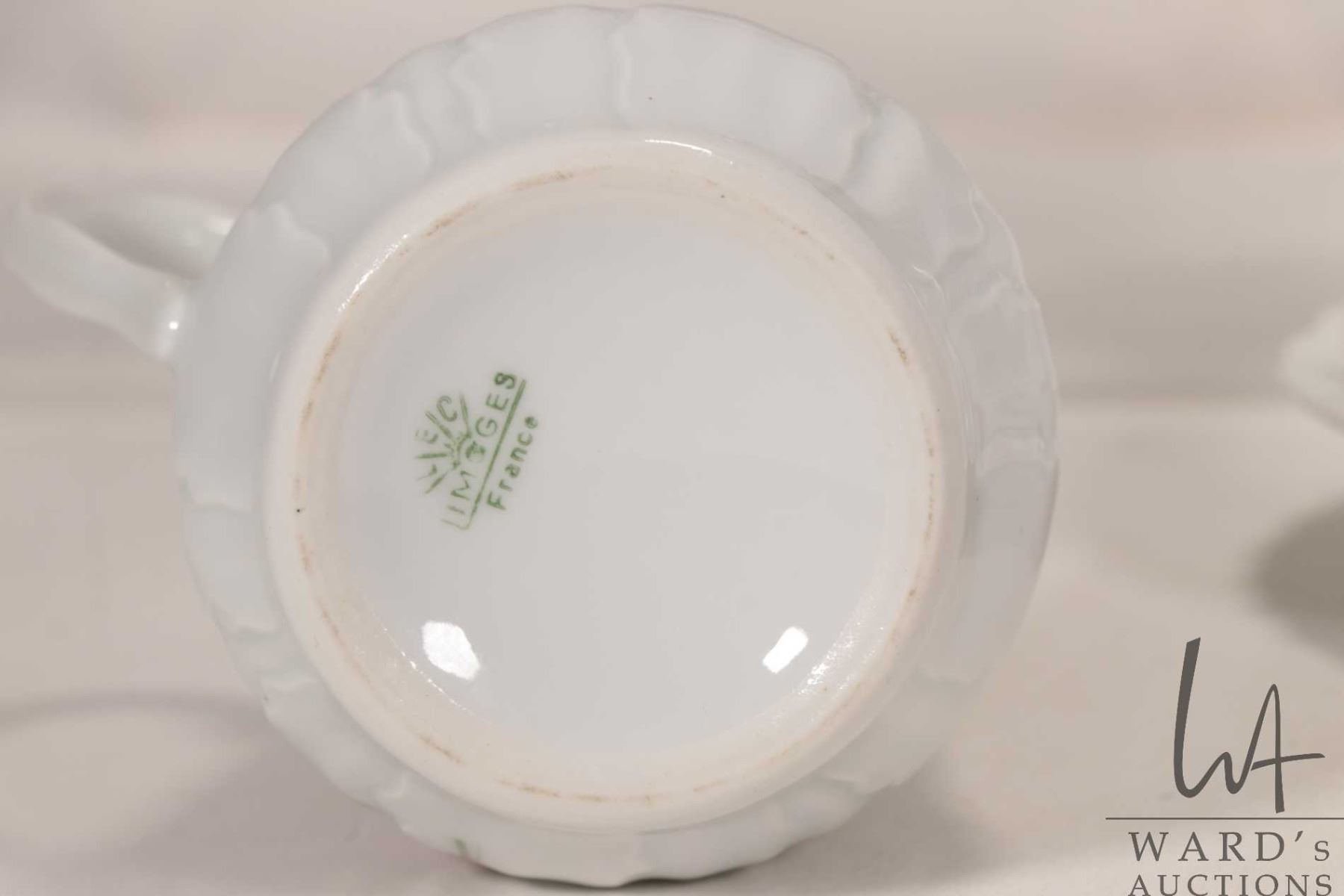 Limoge coffee set with coffee pot, cream and lidded sugar and four snack plates and four demis and s
