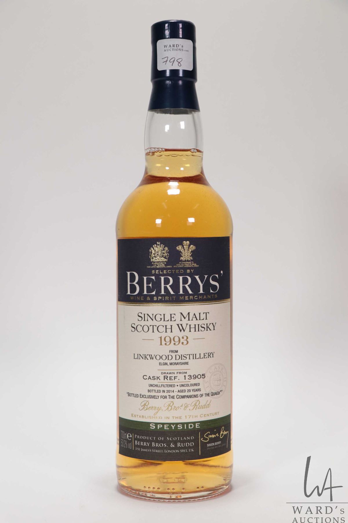Linkwood/ Berry's/ 1993/ 20 Year Old/ Single Malt Scotch Whisky/ Cask #13905/ Btld. 2014/ 700ml/ 53.2% ABV Exclusive bottling for the Companions of the Quaich NOTE: Alcohol cannot be insured by any courier in Canada. Local pick up recommended. Canadian bidders only.