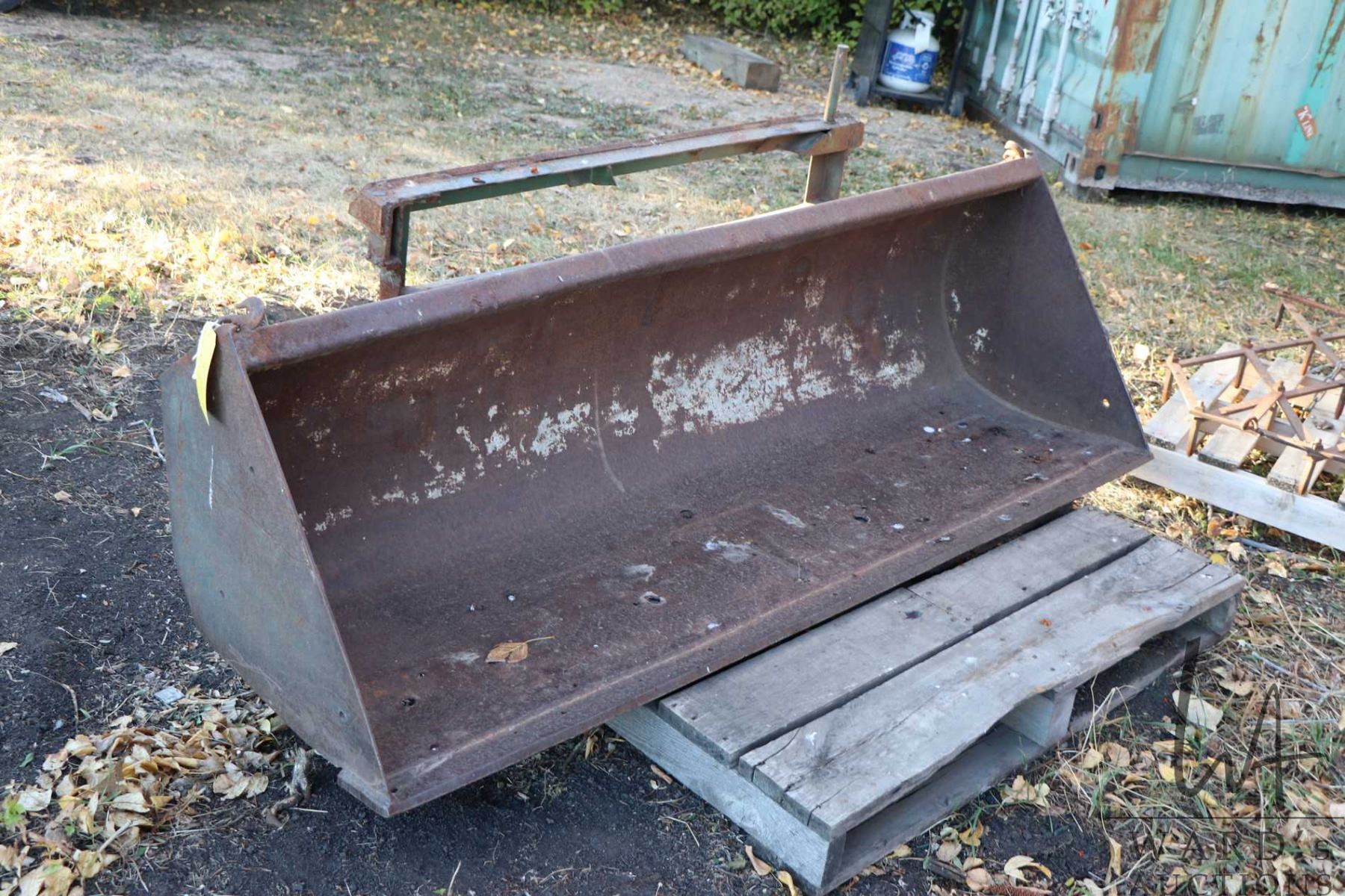 Loader bucket and crudely made skid steer attachment 72" wide    Please note: Viewing to take place near Morinville on Saturday October 22nd from 1-3pm. Call Brad @ 780-940-8378 or e-mail brad@wardsauctions.com for details and address.   Removal by appointment. Deadline on or before October 29th. Bring your own labour, medium sized loader on site.