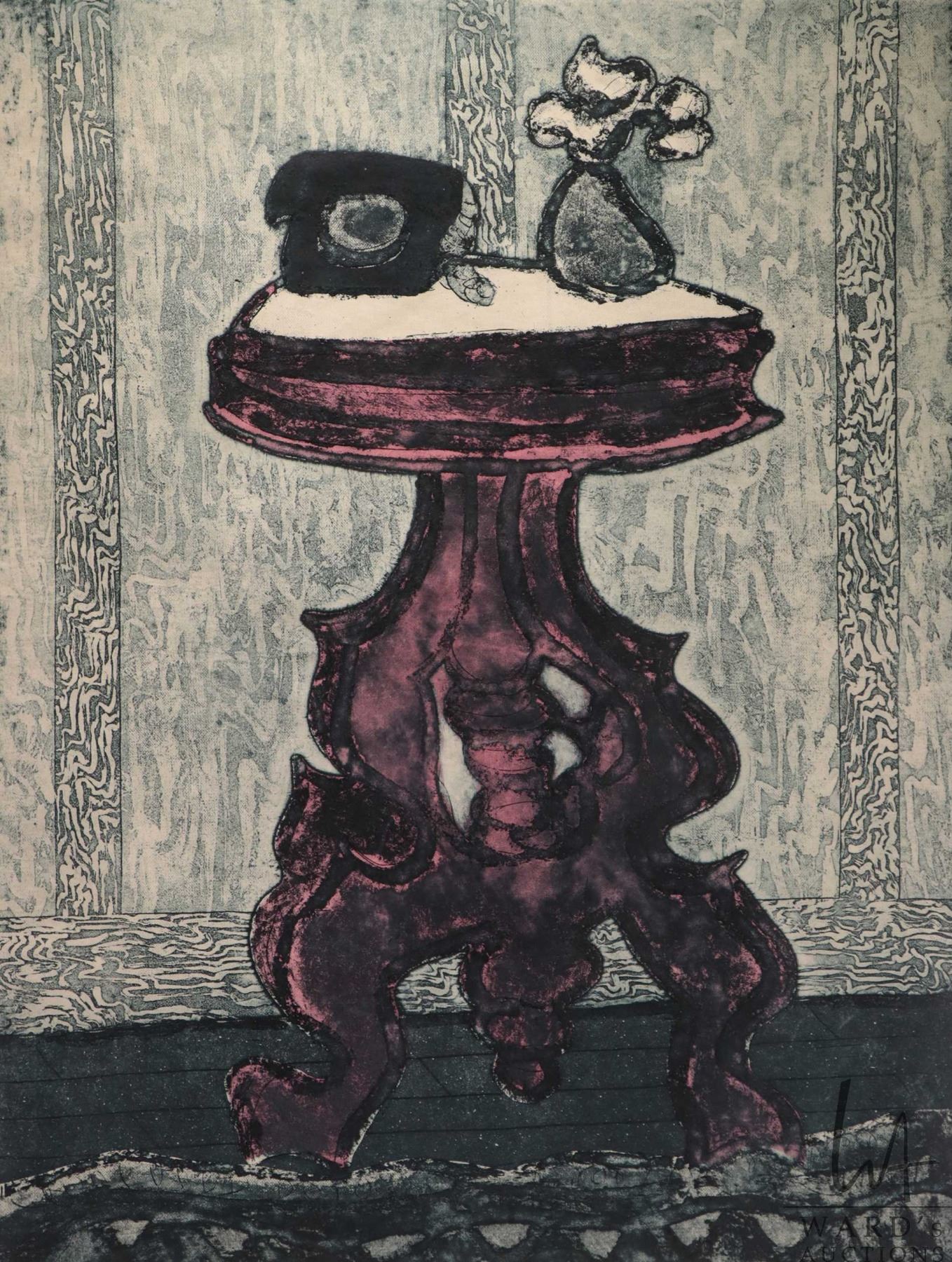 Lorna Lively framed limited edition print "Dancing Table", pencil signed by artist, Working Proof Ed