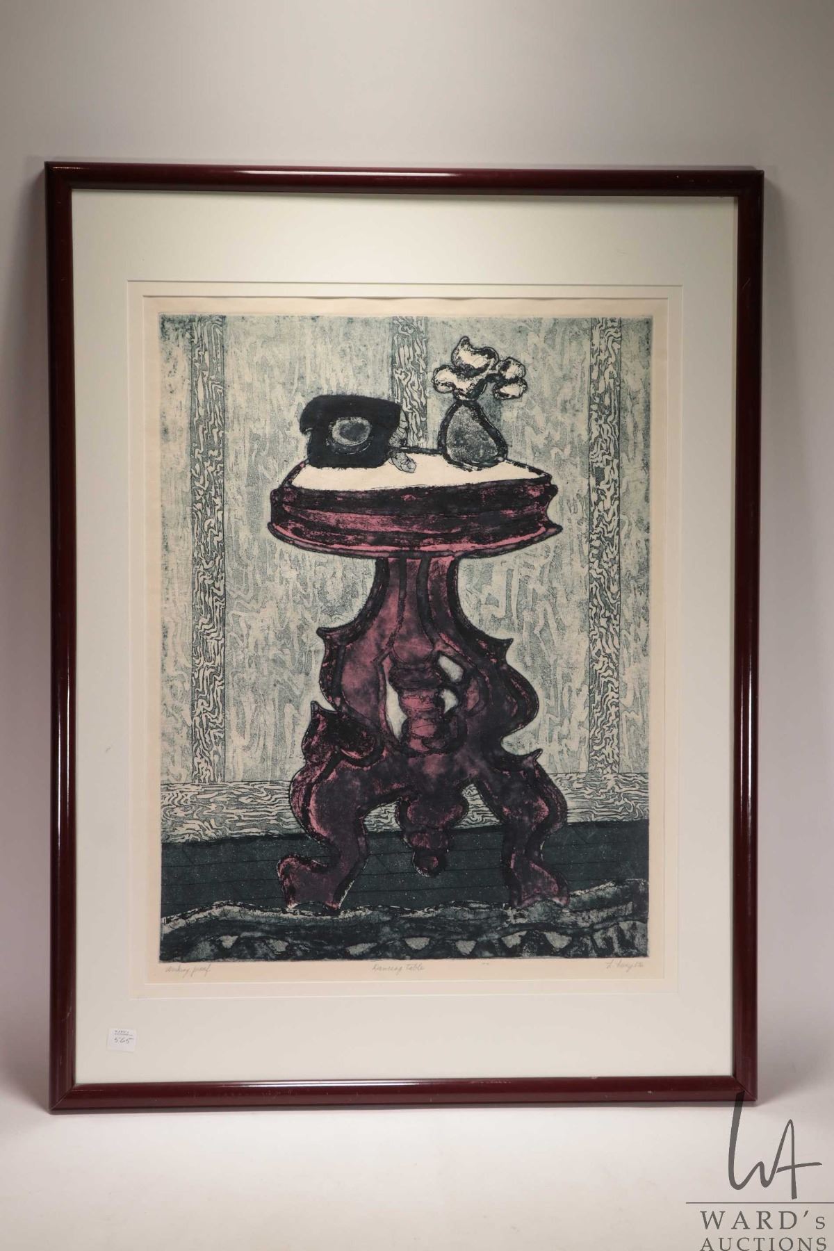 Lorna Lively framed limited edition print "Dancing Table", pencil signed by artist, Working Proof Edition, overall dimensions including frame 33 1/2" X 25 1/2"