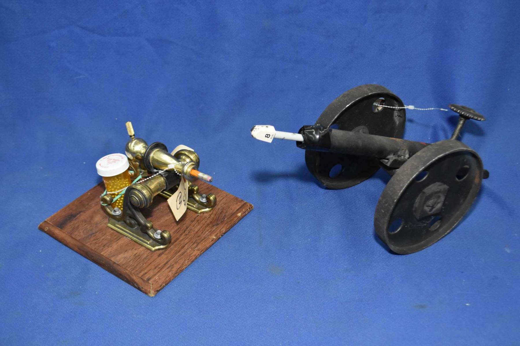 Lot of Two Hand Made Cannons : Brass Cannon on wooden board [ funtional shoots BB's ] - Metal Cannon Approx. .45 Cal w/ 7 1/2" barrel functions