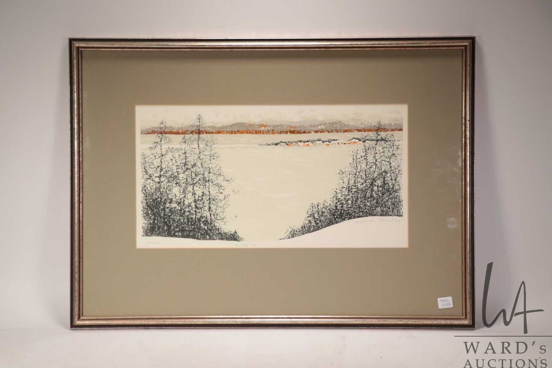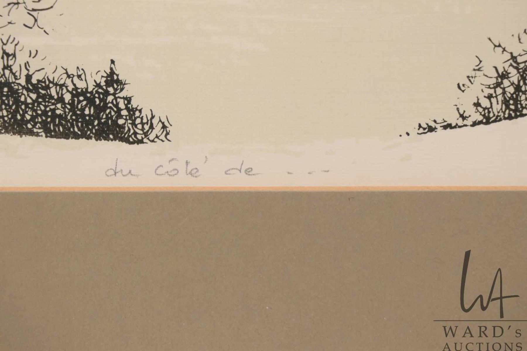 Lucienne Cornet framed limited edition woodcut titled "du Cole' de ...." and pencil signed by artist '77, 33/100, overall dimensions including frame 20" X 28"