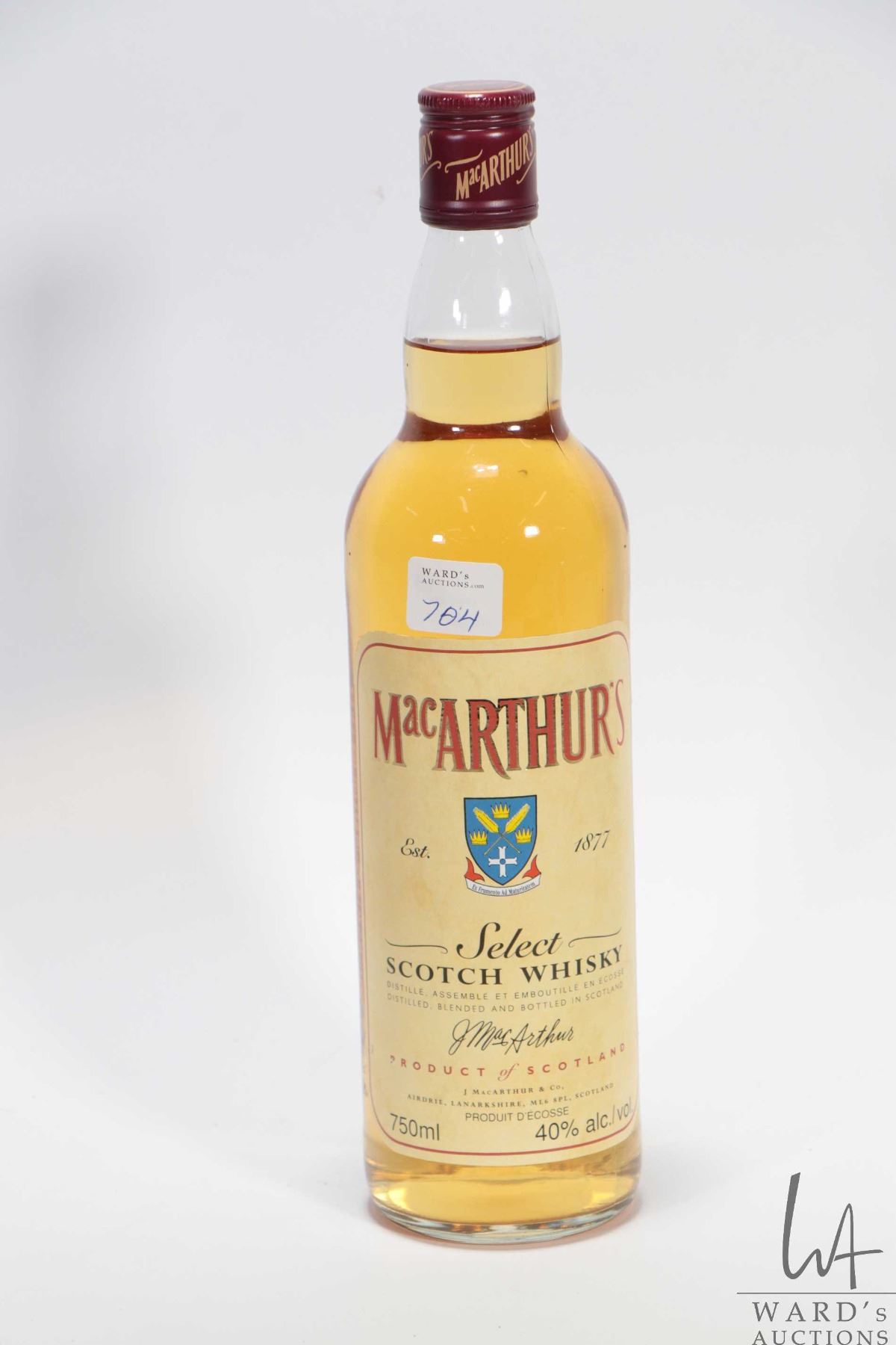 MacArthur's/ J. MacArthur & Co./ Blended Scotch Whisky/ 750ml/ 40% ABV Note: Shipping only available in Canada. Shippers insurance is unavailable. Foreign buyers must arrange their own brokers
