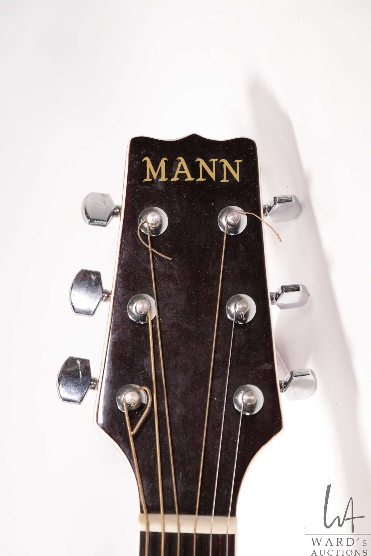 Mann cutaway guitar. Two tone maple top, walnut sides, back deep body dreadnaught, cutaway acoustic,