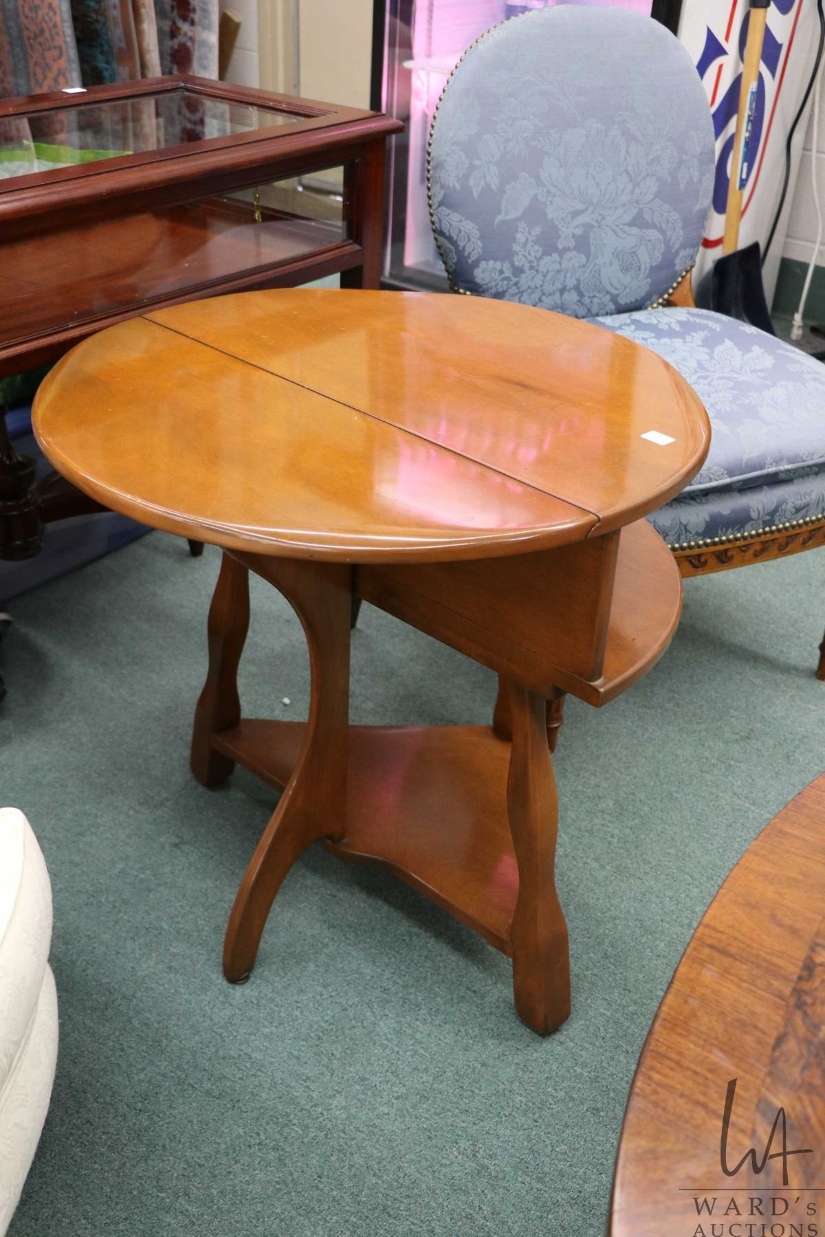 Maple convertible occasional table with one drop leaf, made by Imperial Loyalist, 24" X 24" D