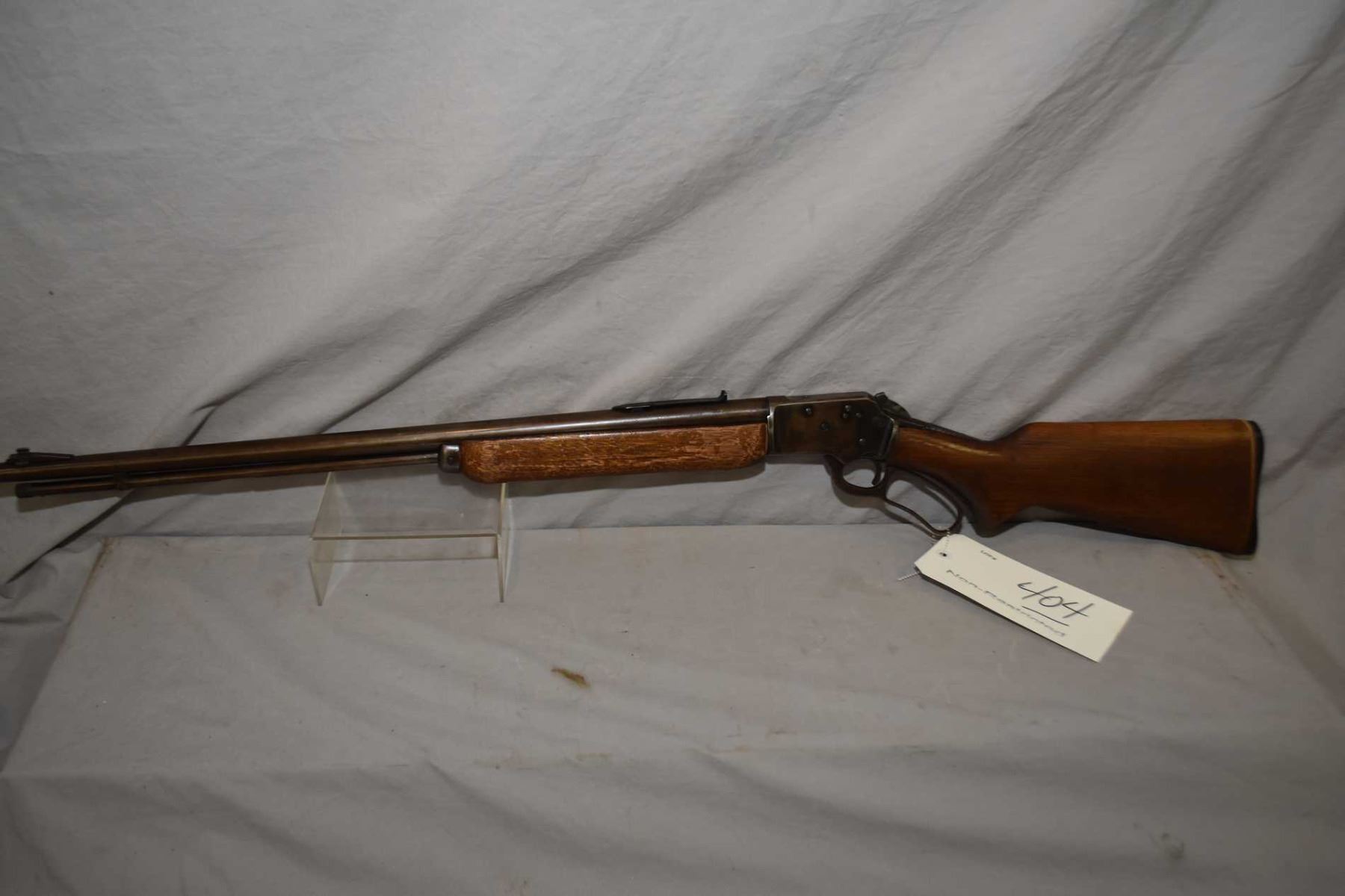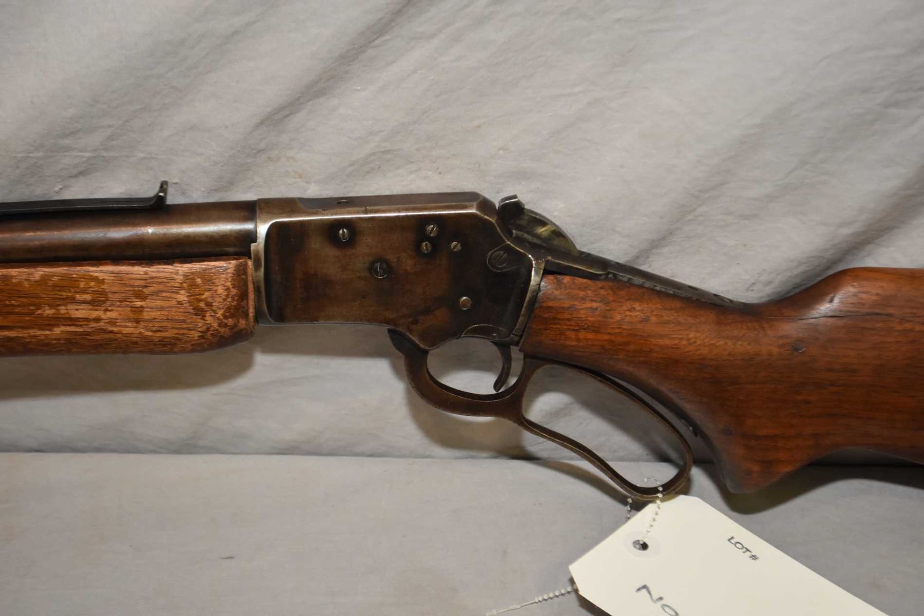 Marlin Model 39 - A .22 LR Cal Tube Fed Lever Action Rifle w/ 24" bbl [ faded blue finish turning brown, back barrel sight missing the lift, broke off spur on hammer, butt stock cracked behind upper tang and loose, replaced butt plate, cracked non original forewood, various marks and scratches to wood and metal ] Ser # Nil