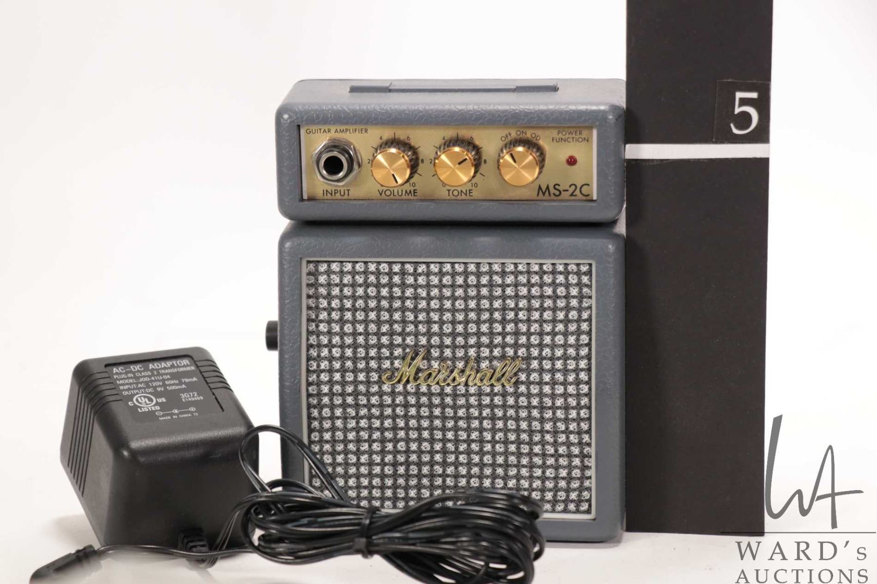 Marshall MS-2C miniature guitar amplifier. Includes power adapter. Working at time of cataloguing