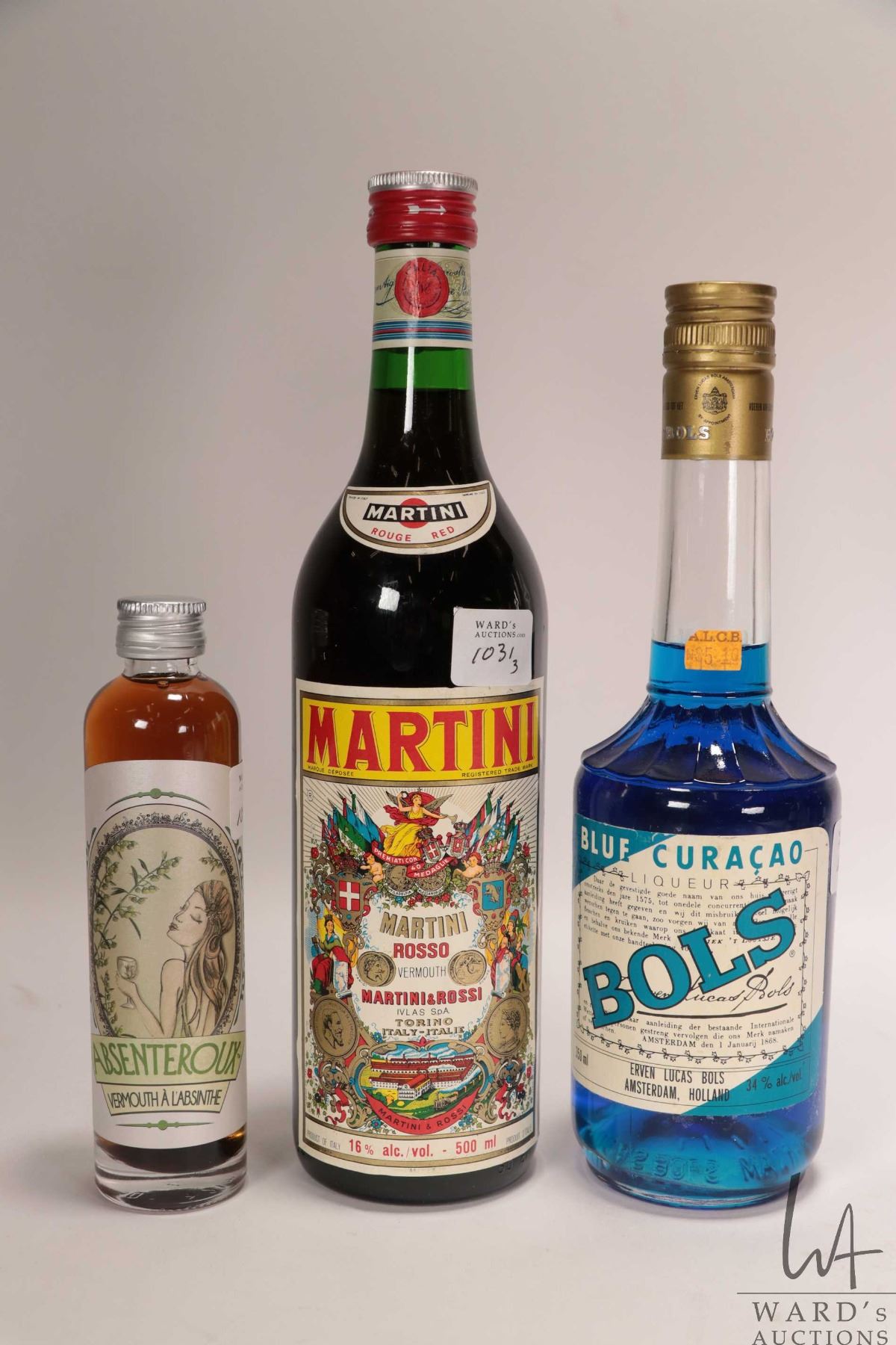 Martini Rosso/ Vermouth/ 500ml/ 16% ABV Bols/ Blue Curacoa/ 350ml/ 34% ABV and Absenteroux/ Vermouth A L'Absinthe/ 100ml/ 18% ABV Note: Alcohol cannot be insured by any courier in Canada. Local pick up is recommended. Canadian buyers only.